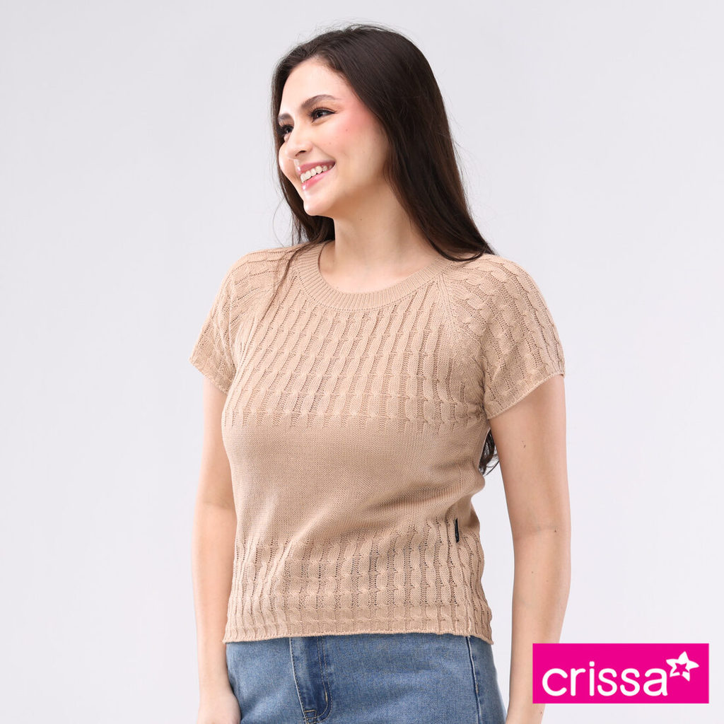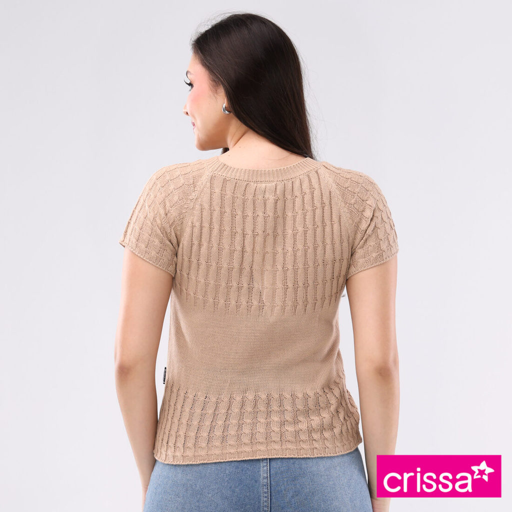Crissa Knitted Cord Fabric Short Sleeves Top CLT14-0103 [Tops for women]