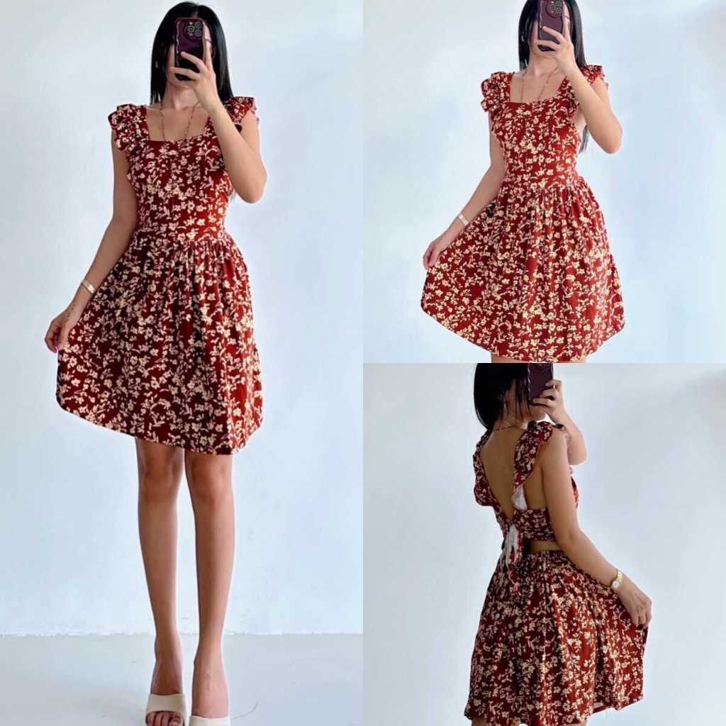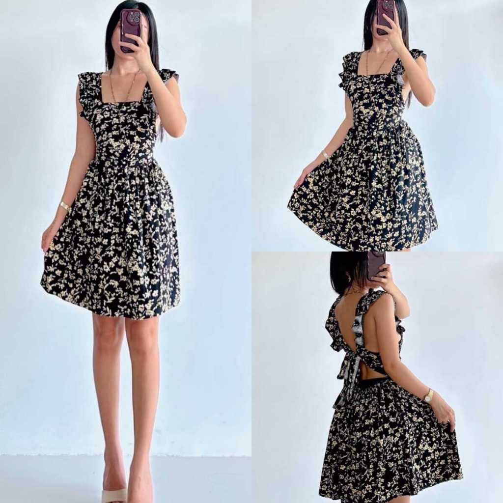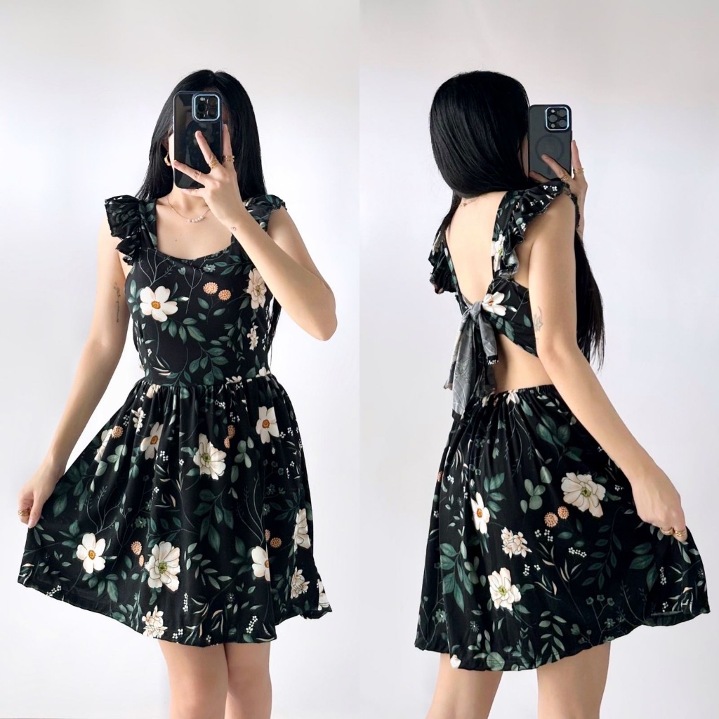 Sunny&Co Women's Vacation Casual Ruffled shoulder straps Floral Dress