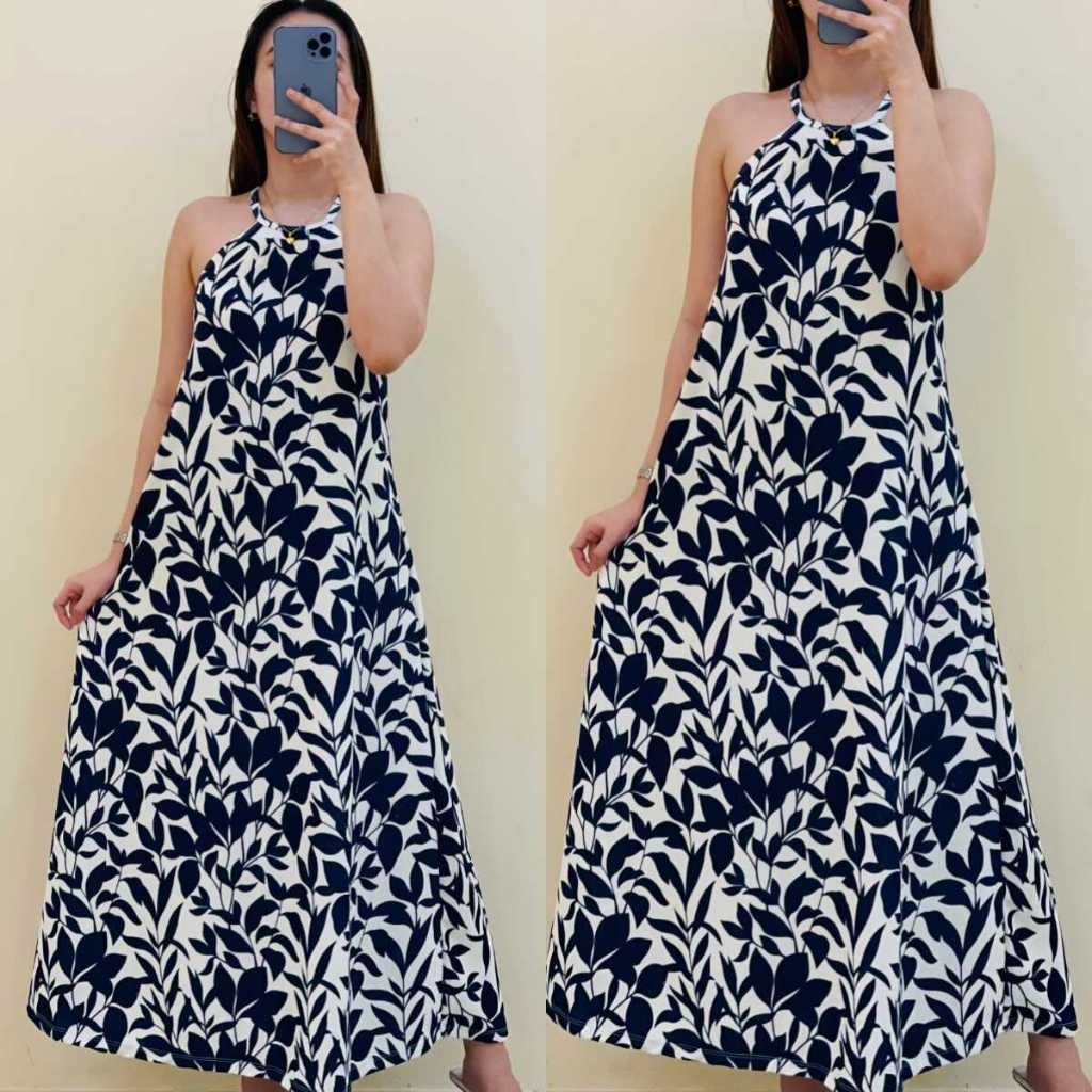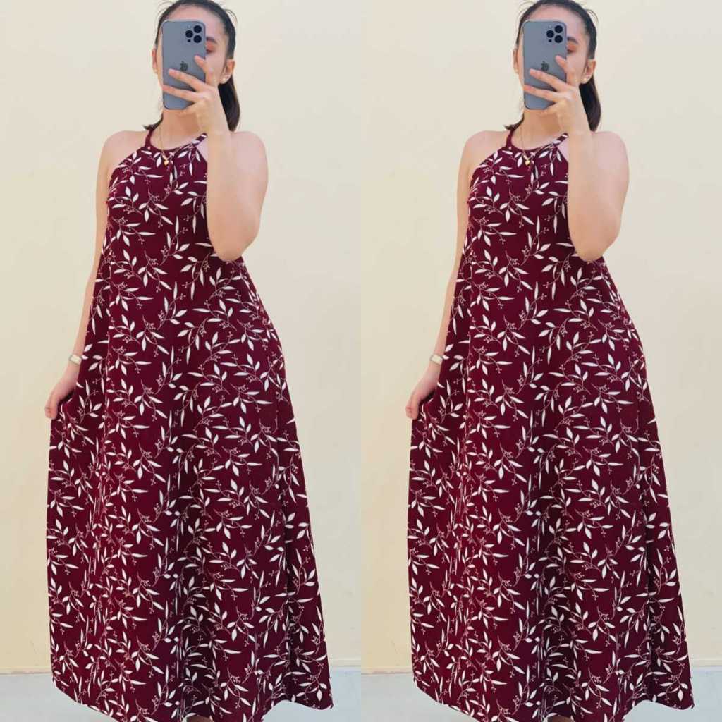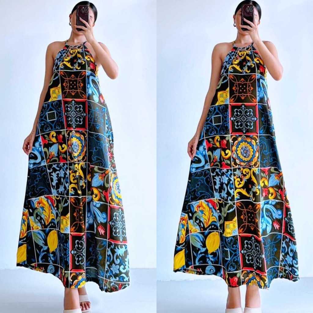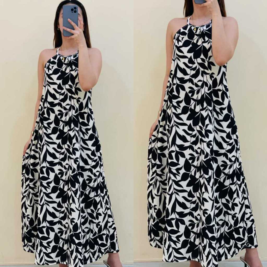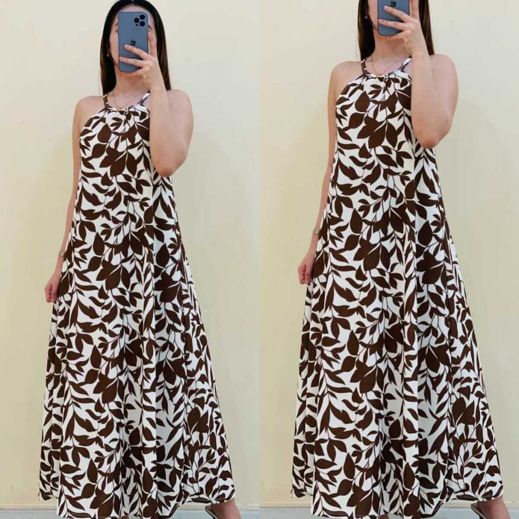 Sunny&Co Crepe Print and Plain Bark Tie Maxi Plus Size Dress
