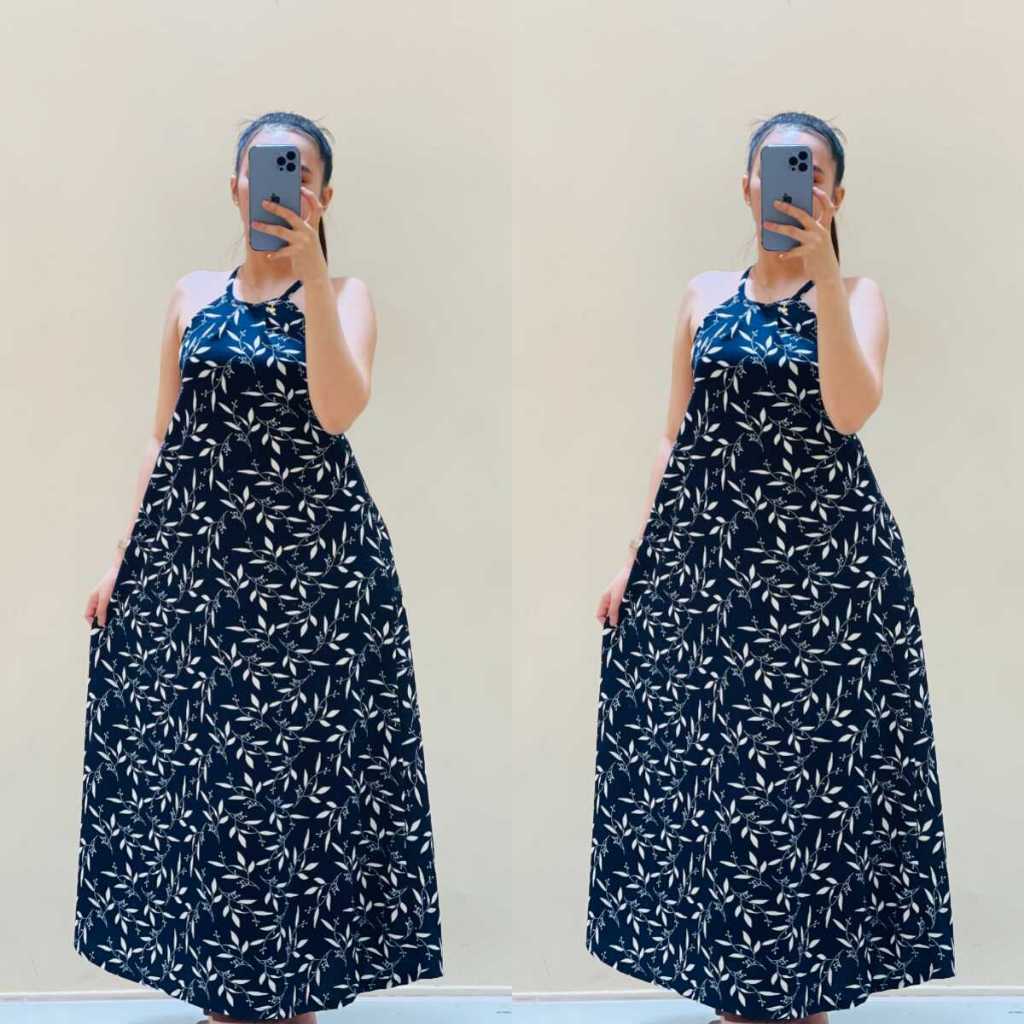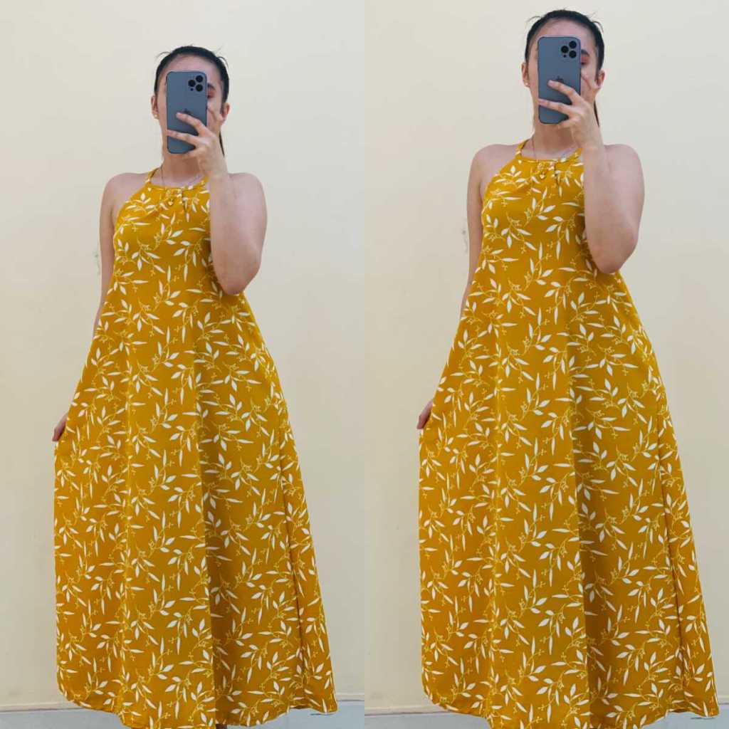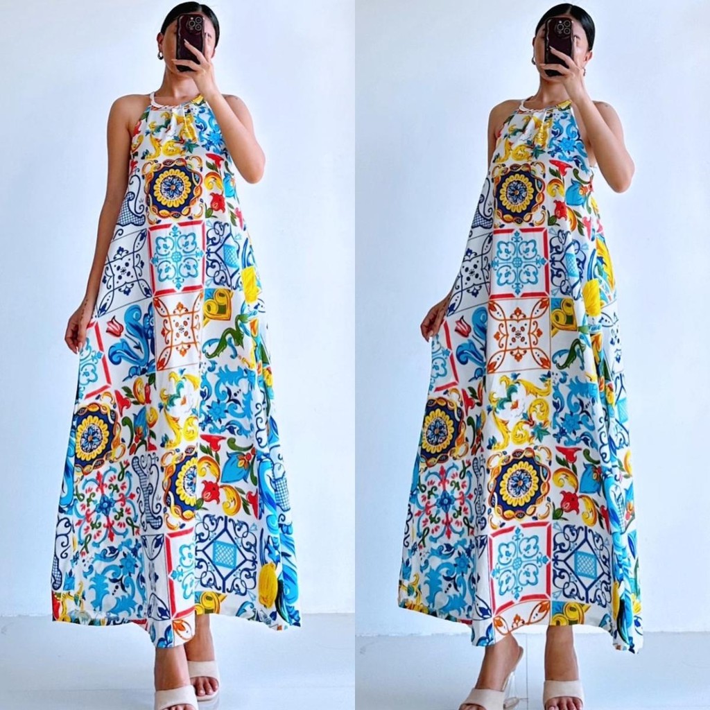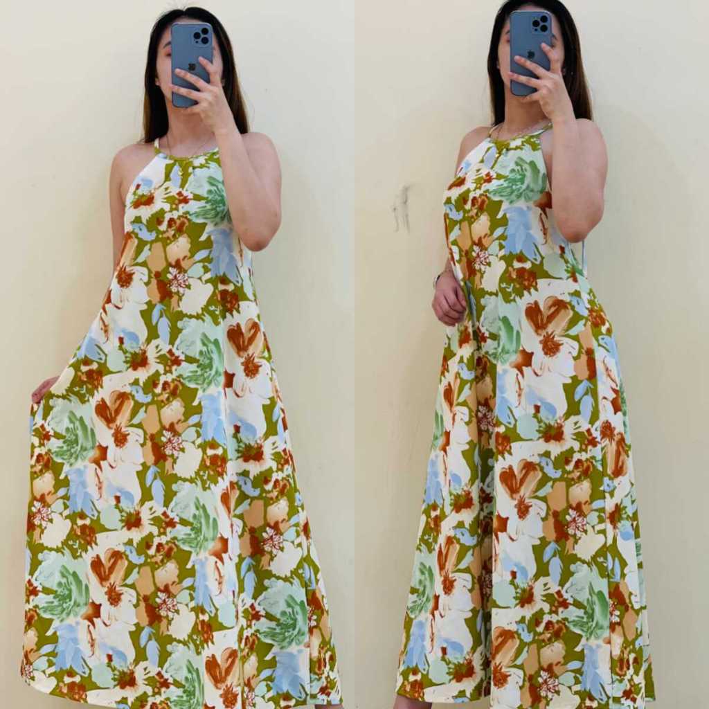 Sunny&Co Crepe Print and Plain Bark Tie Maxi Plus Size Dress