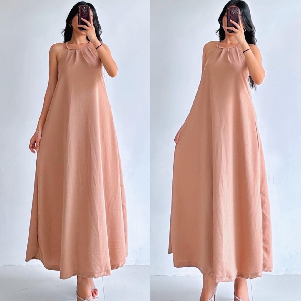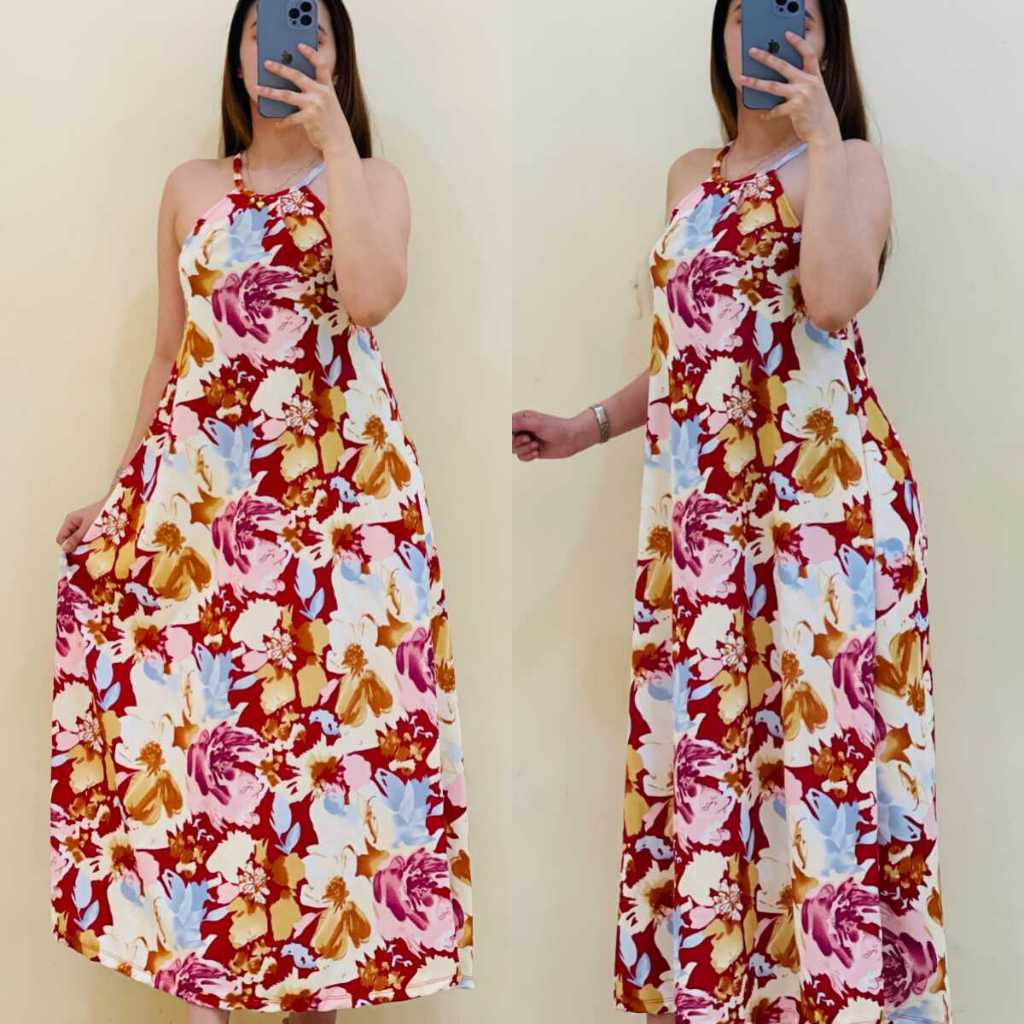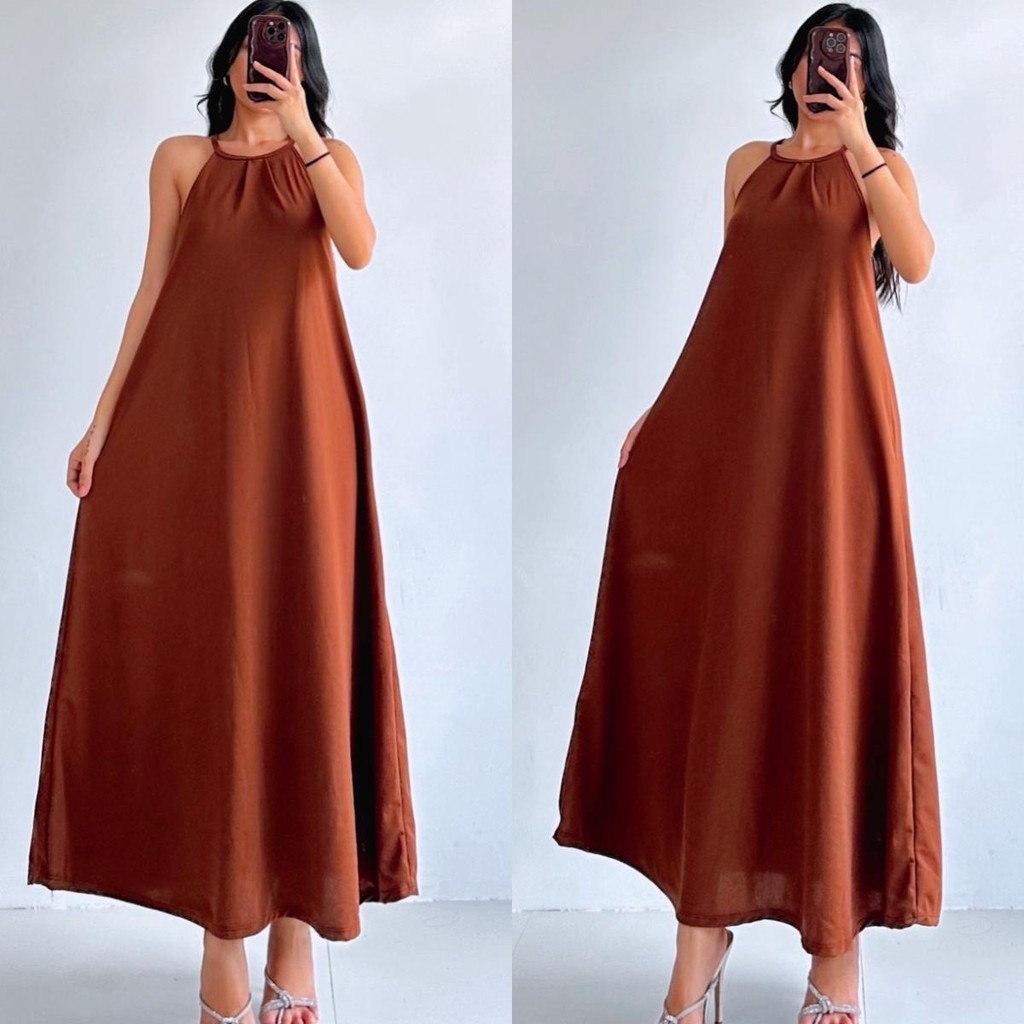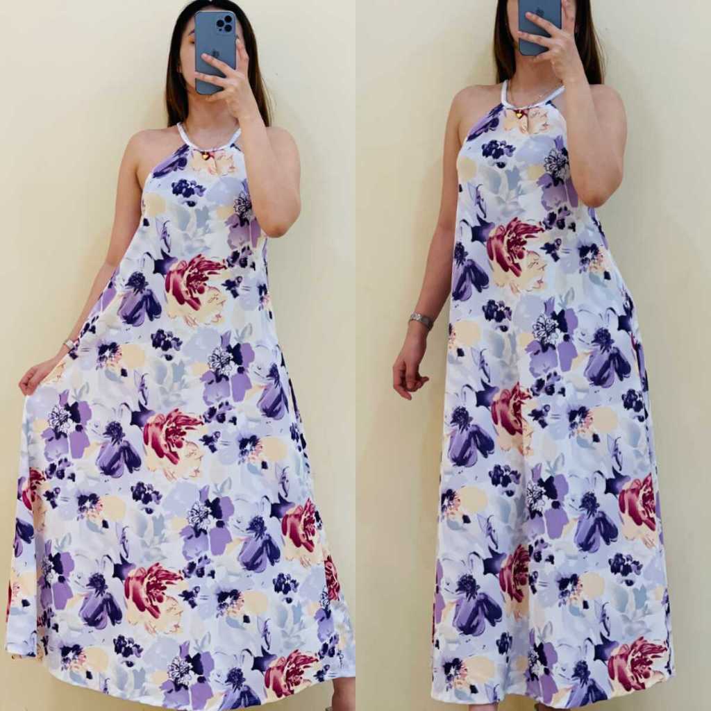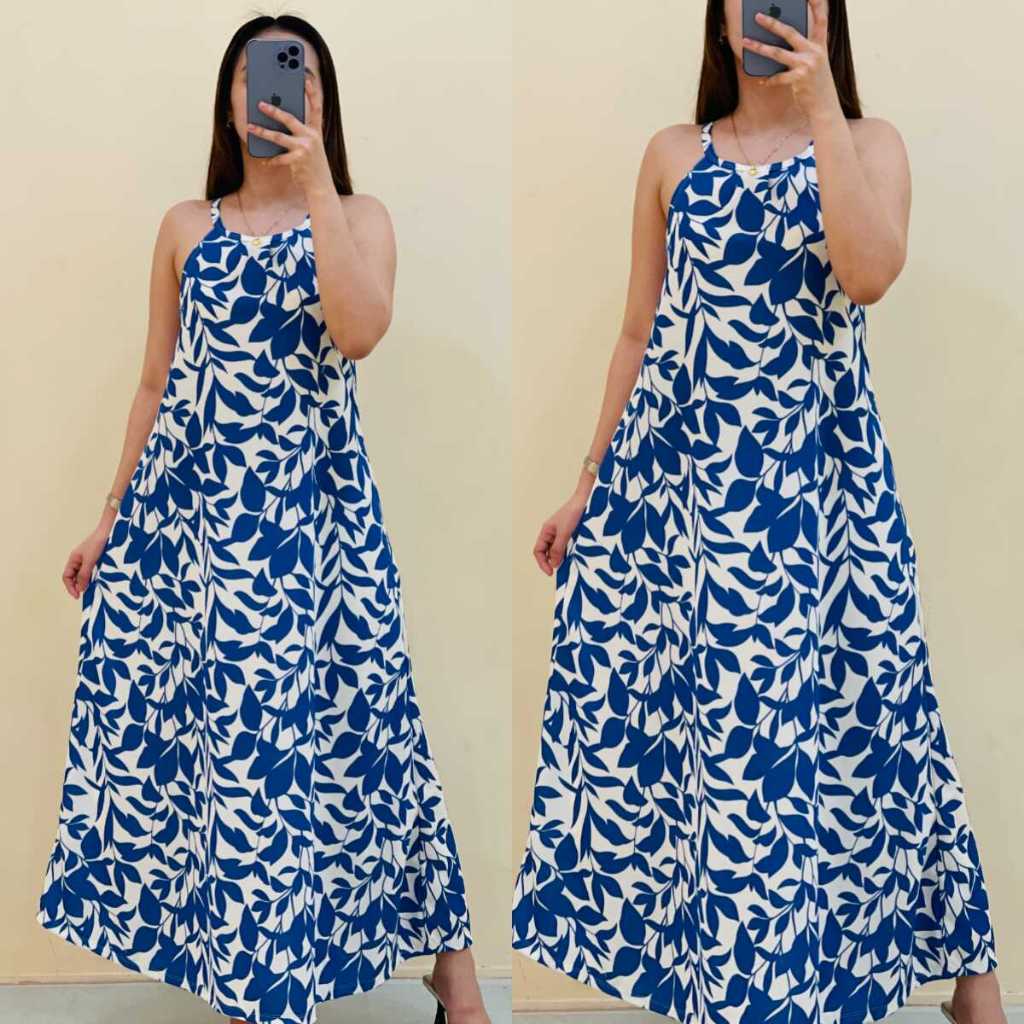 Sunny&Co Crepe Print and Plain Bark Tie Maxi Plus Size Dress