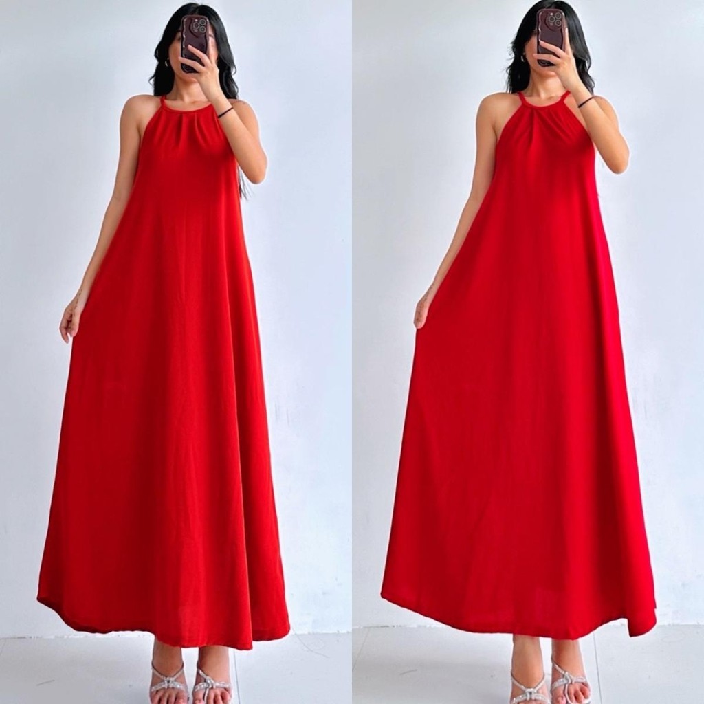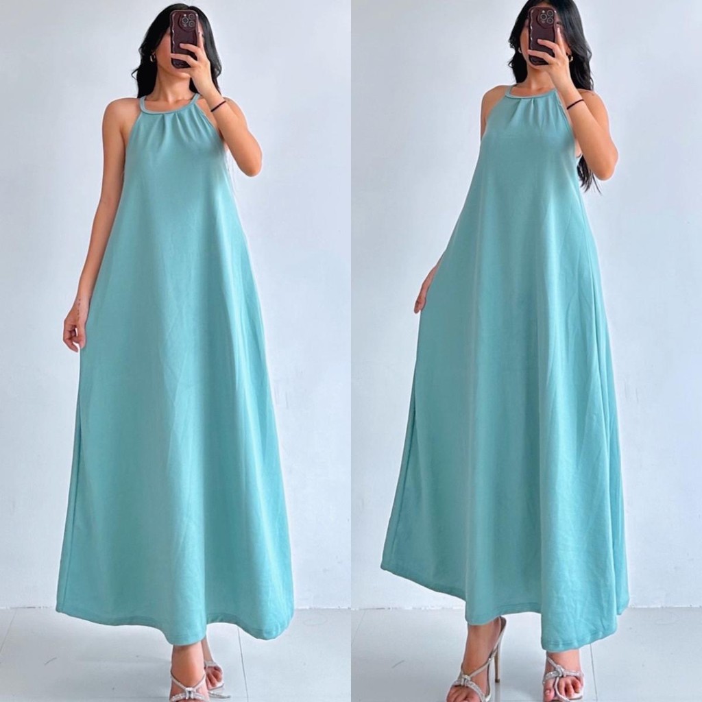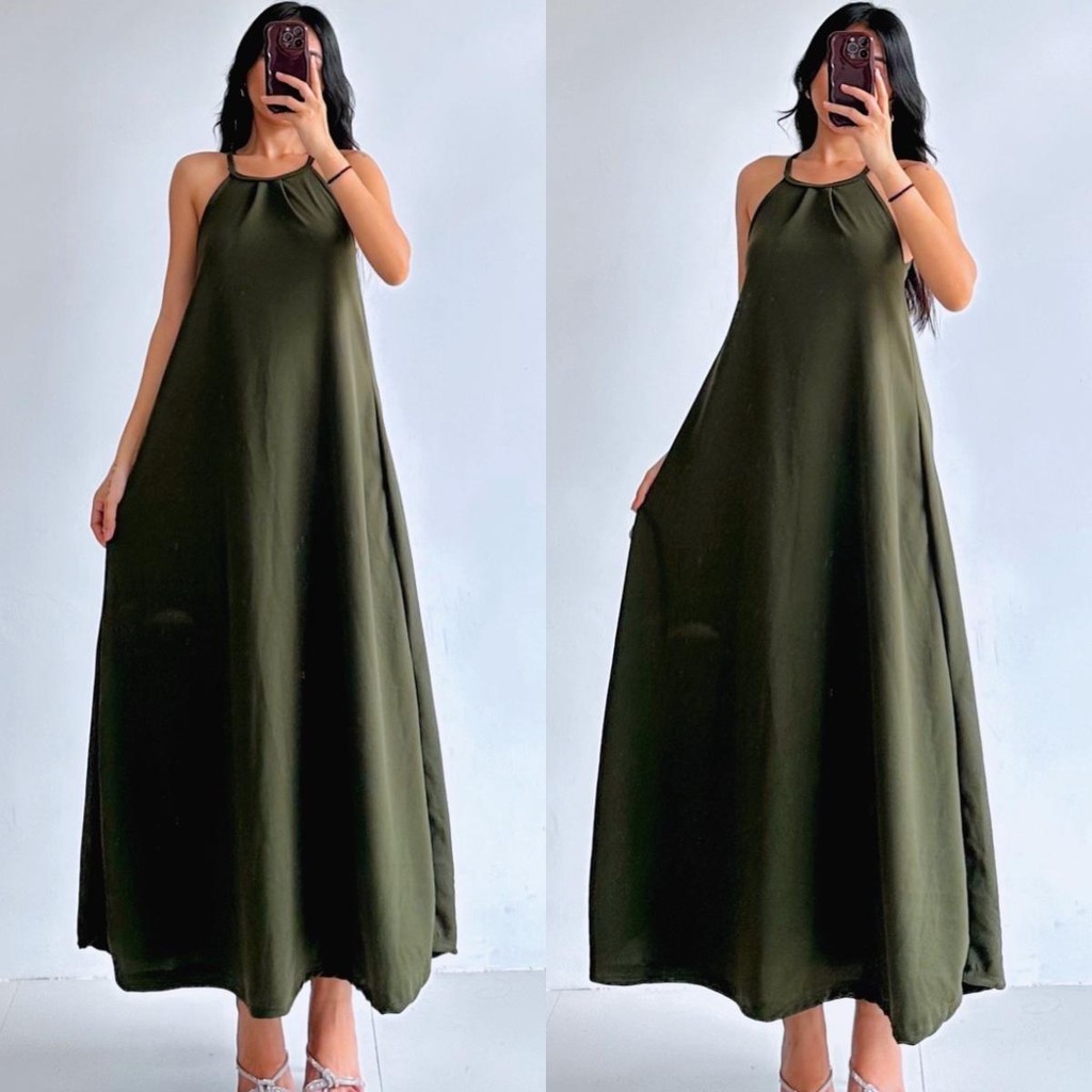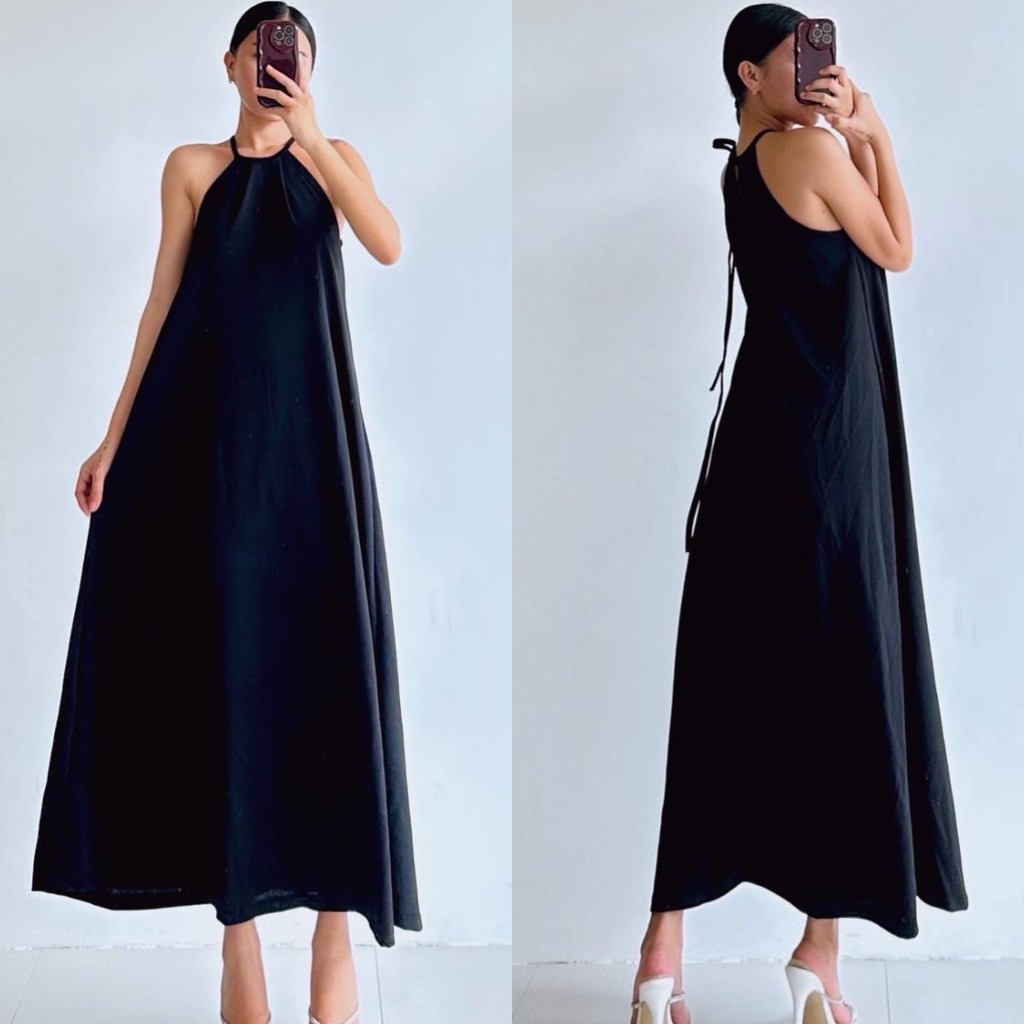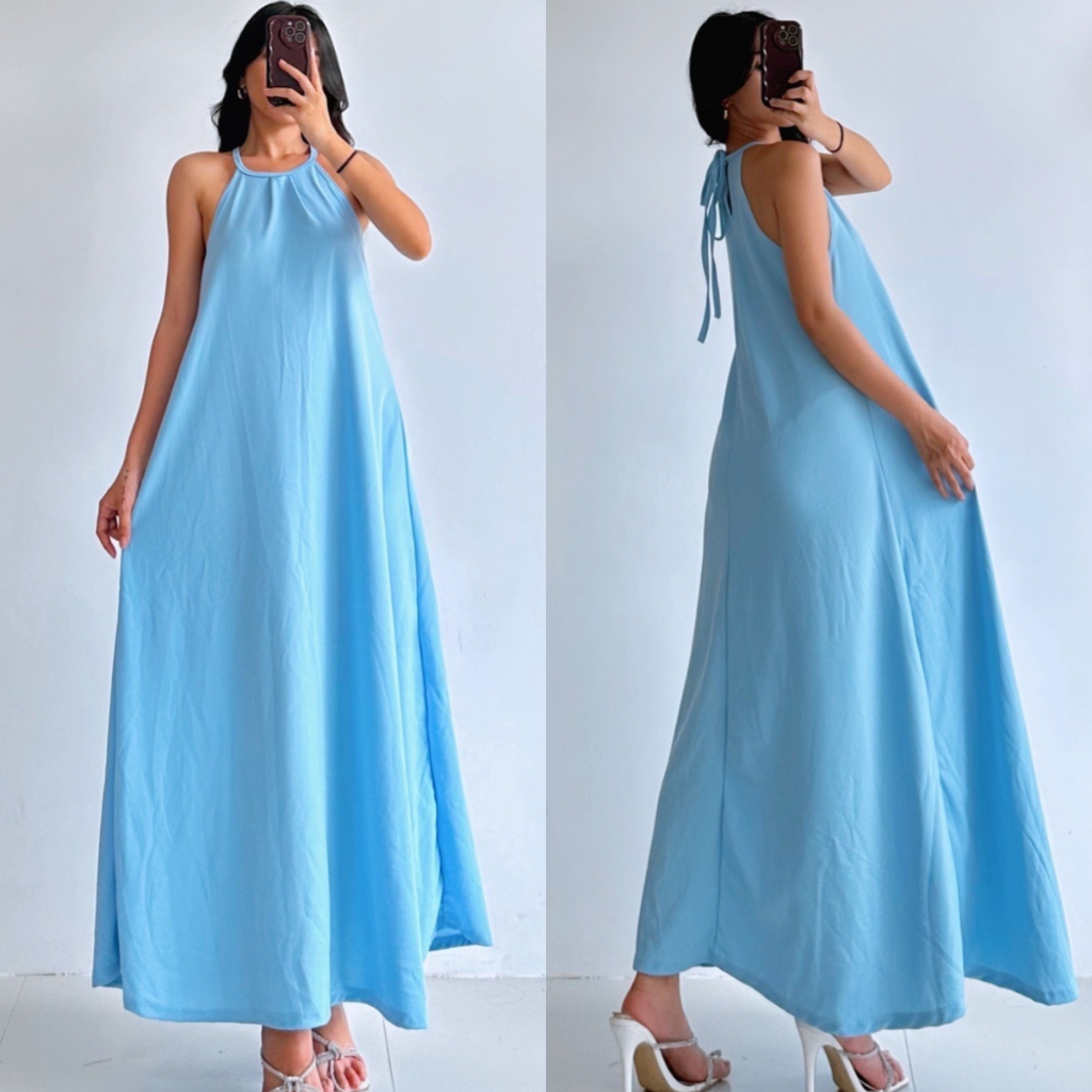 Sunny&Co Crepe Print and Plain Bark Tie Maxi Plus Size Dress