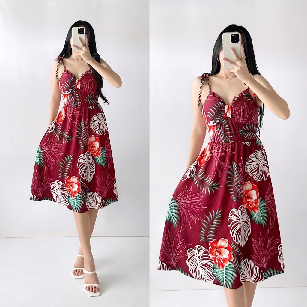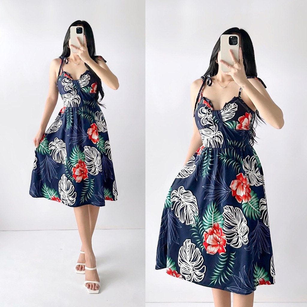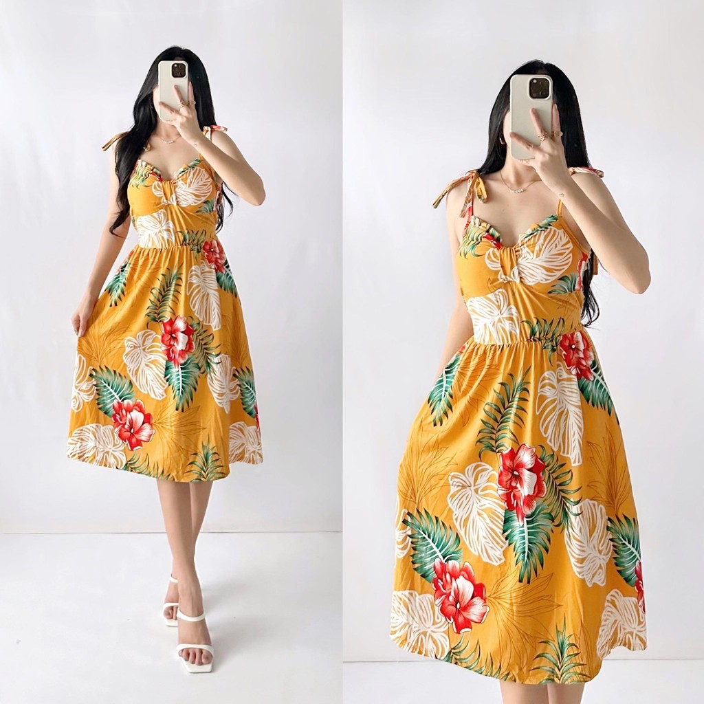 Sunny&Co Cotton Spandex Padded Spaghetti Strap Midi Dress