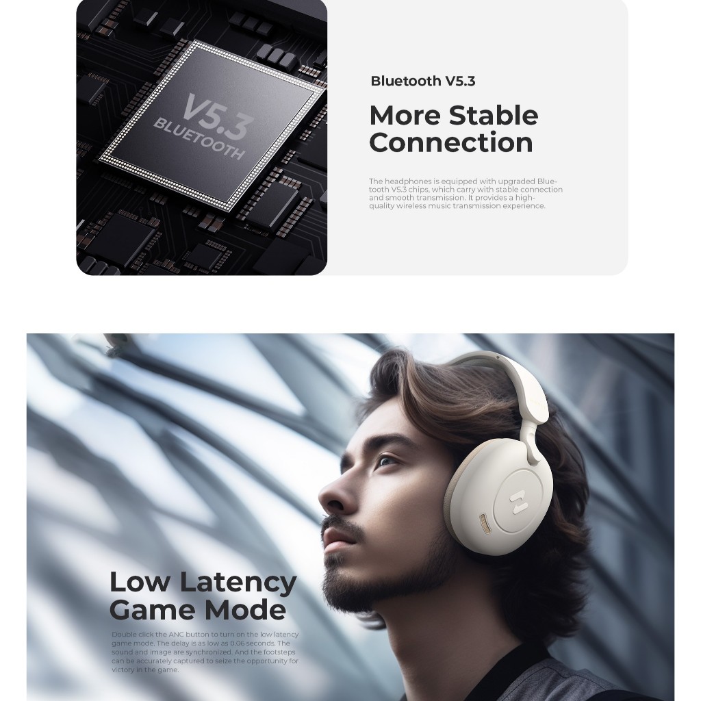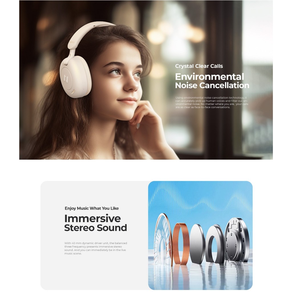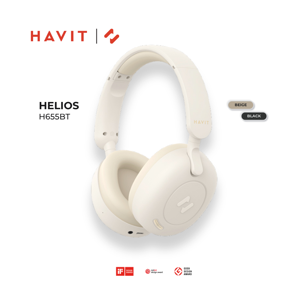 Havit Helios H655BT || Hybrid Active Noise Cancelling Wireless Headphones || Black and Beige