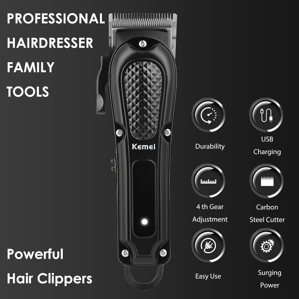 KEMEI Hair Clippers for Men, Professional Barber Clipper for Hair Cutting Cordless & Corded, Rechargeable Beard Trimmer KM-1071