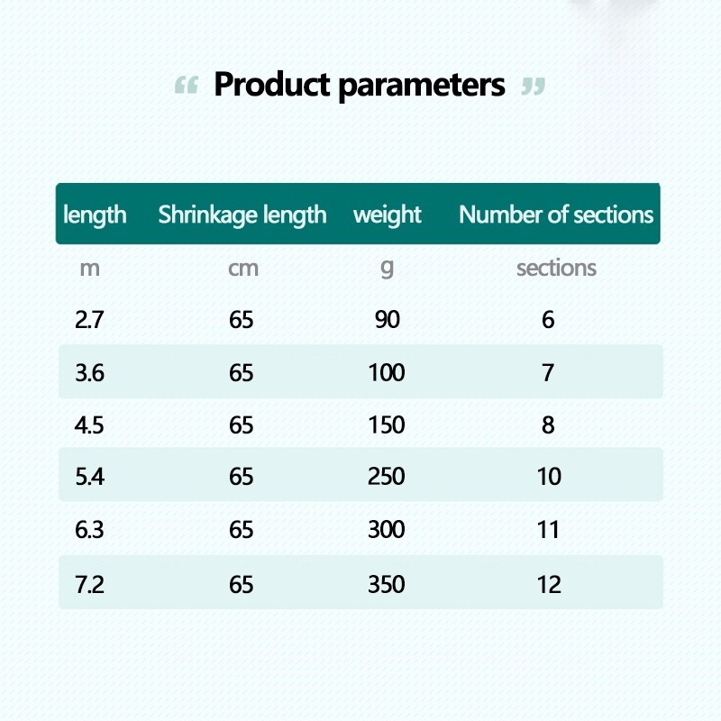 Portable Telescopic Fishing Rods 2.7/3.6/4.5/5.4/6.3/7.2M Pole Fiberglass Ultra Light Telescopic
