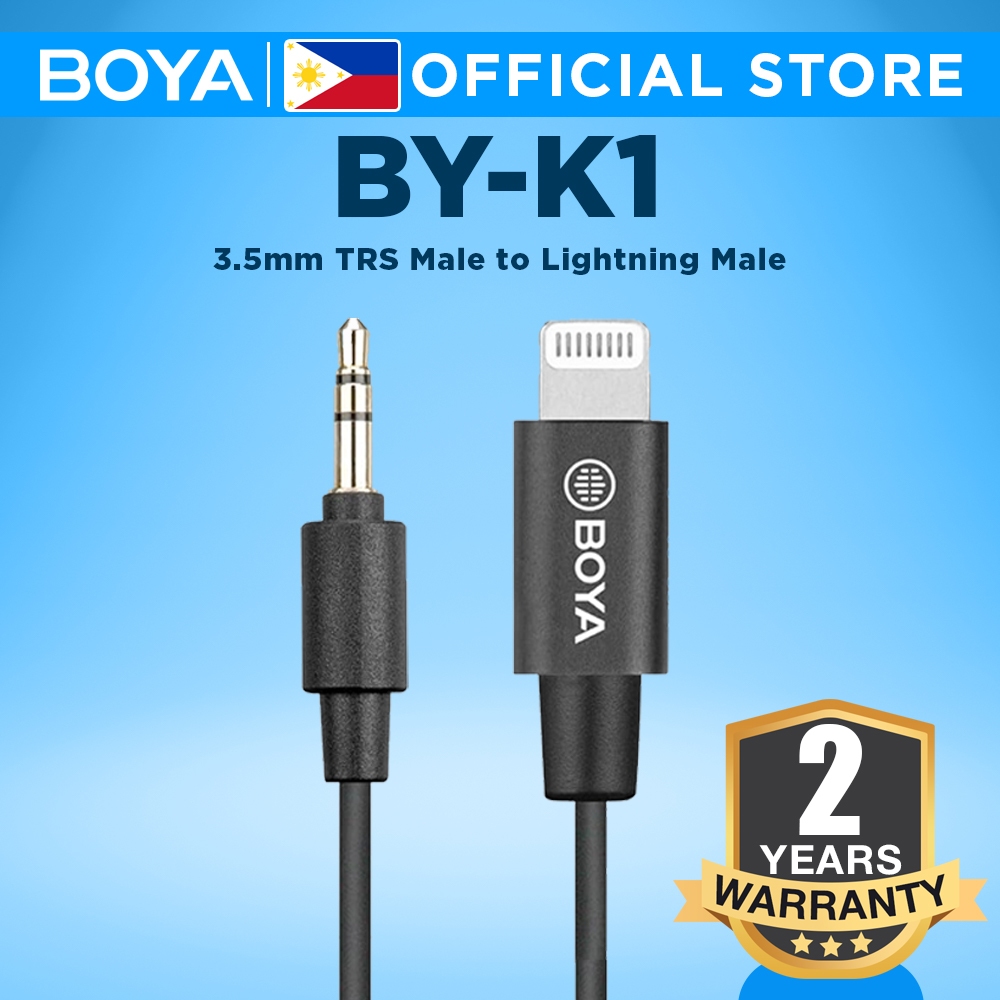 Boya BY-K1 3.5mm TRS (Male) to 20cm (Male) Lightning Adapter Cable Compatible