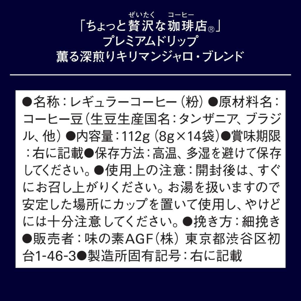 AGF A Little Luxury Coffee Shop Regular Coffee Premium Drip, Fragrant Dark Roast Kilimanjaro Blend, 14 Bags [Drip Coffee]