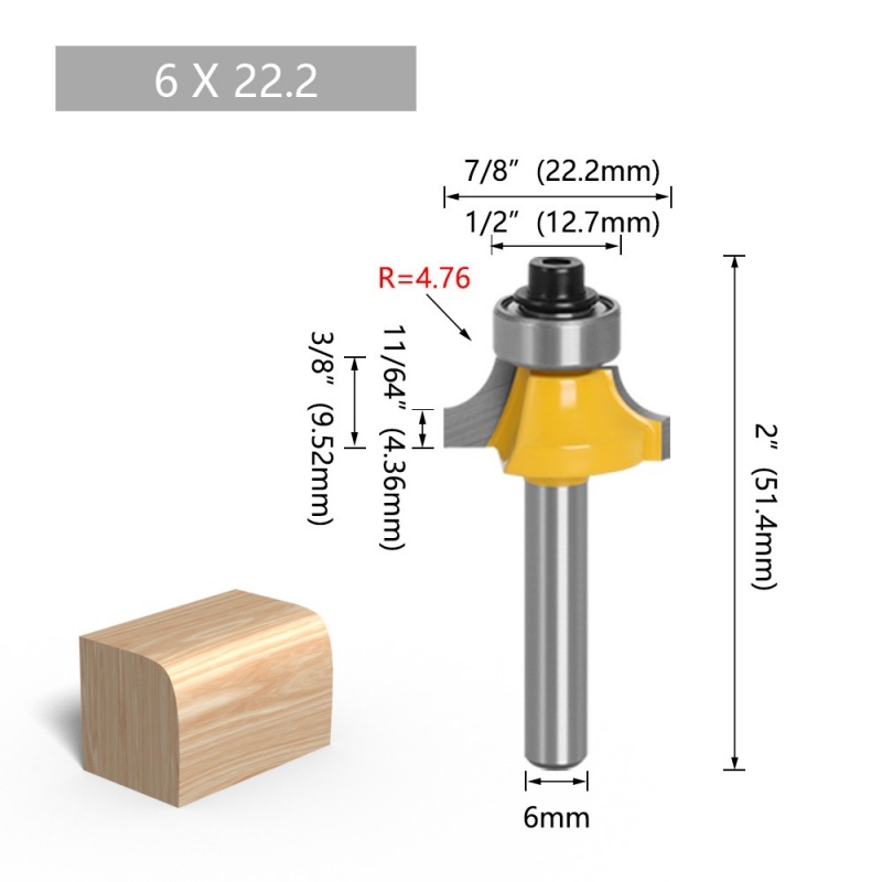6MM Shank Corner Round Over Router Bit with BearingMilling Cutter for Wood Woodwork Tungsten Carbide