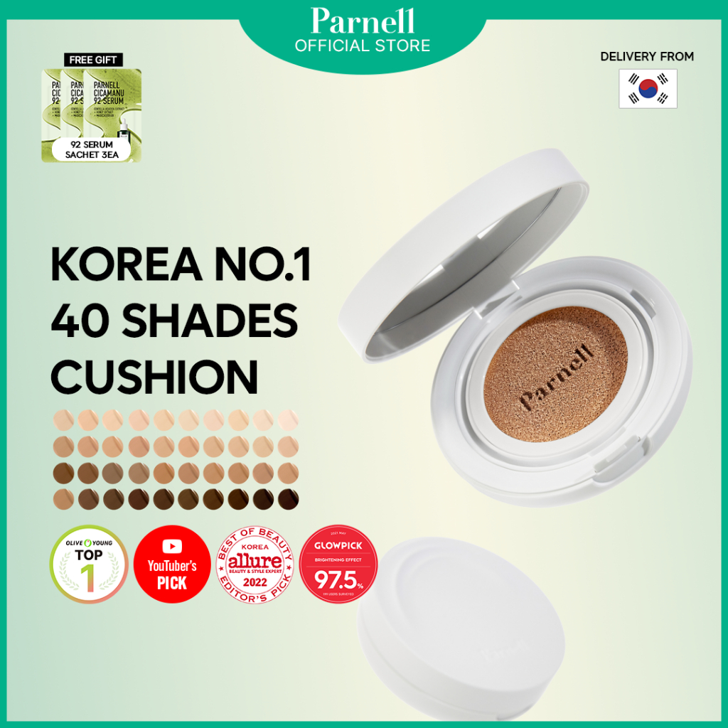 [PARNELL Official] Cicamanu Serum Cushion, 0.52 Oz, 15g, SPF45, PA++, Moisturizing Foundation for Soothing, Coverage, Glass Skin and Lightweight for Sensitive and Dry Skin