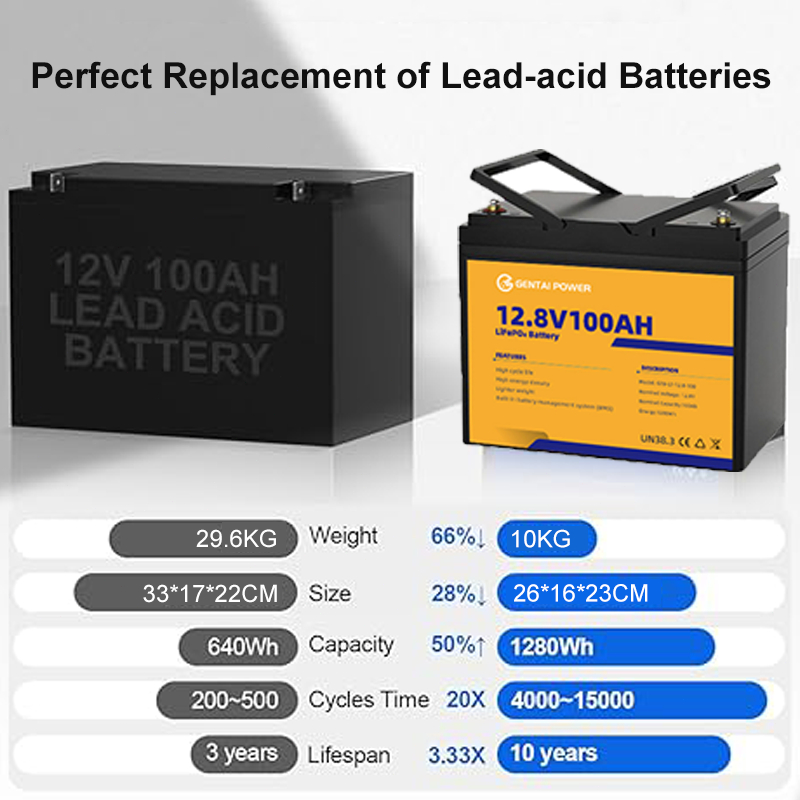 GENTAI POWER Lifepo4 Battery 12V 100Ah Lithium Battery 12V Solar Battery 12V 100Ah Lithium with BMS