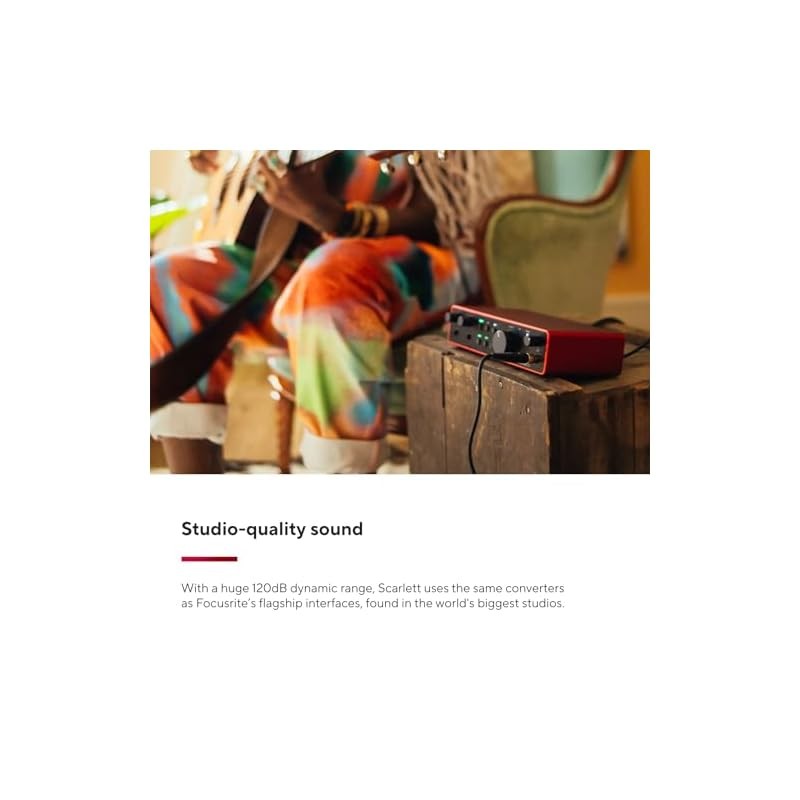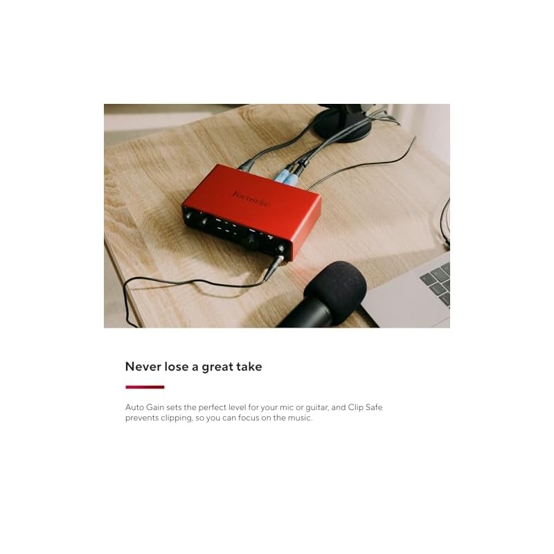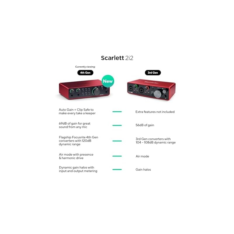 Focusrite Scarlett 2i2 4th Gen USB Audio Interface for Recording, Songwriting, Streaming, and Podcasting - Hi-fi, studio-quality recording, with all necessary software for recording. Focusrite Scarlett 2i2 Studio 4th Gen USB Audio Interface Bundle for Son