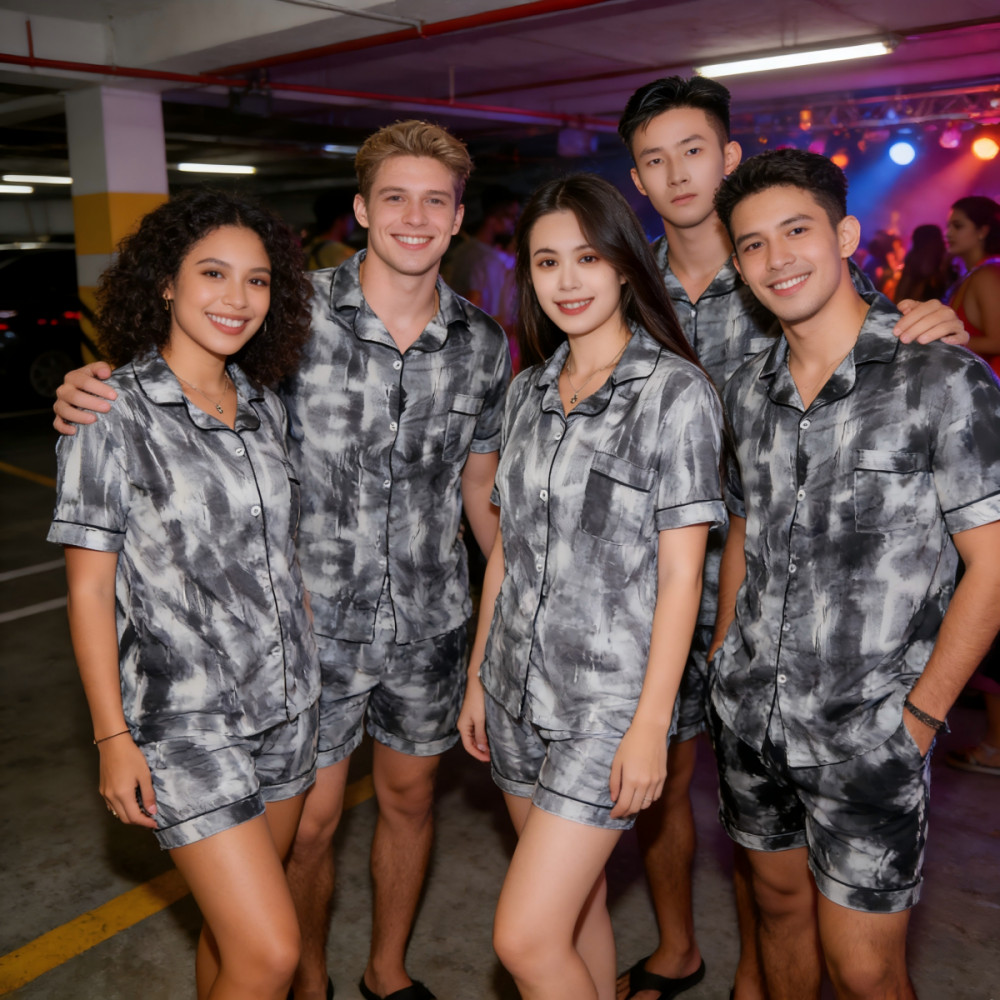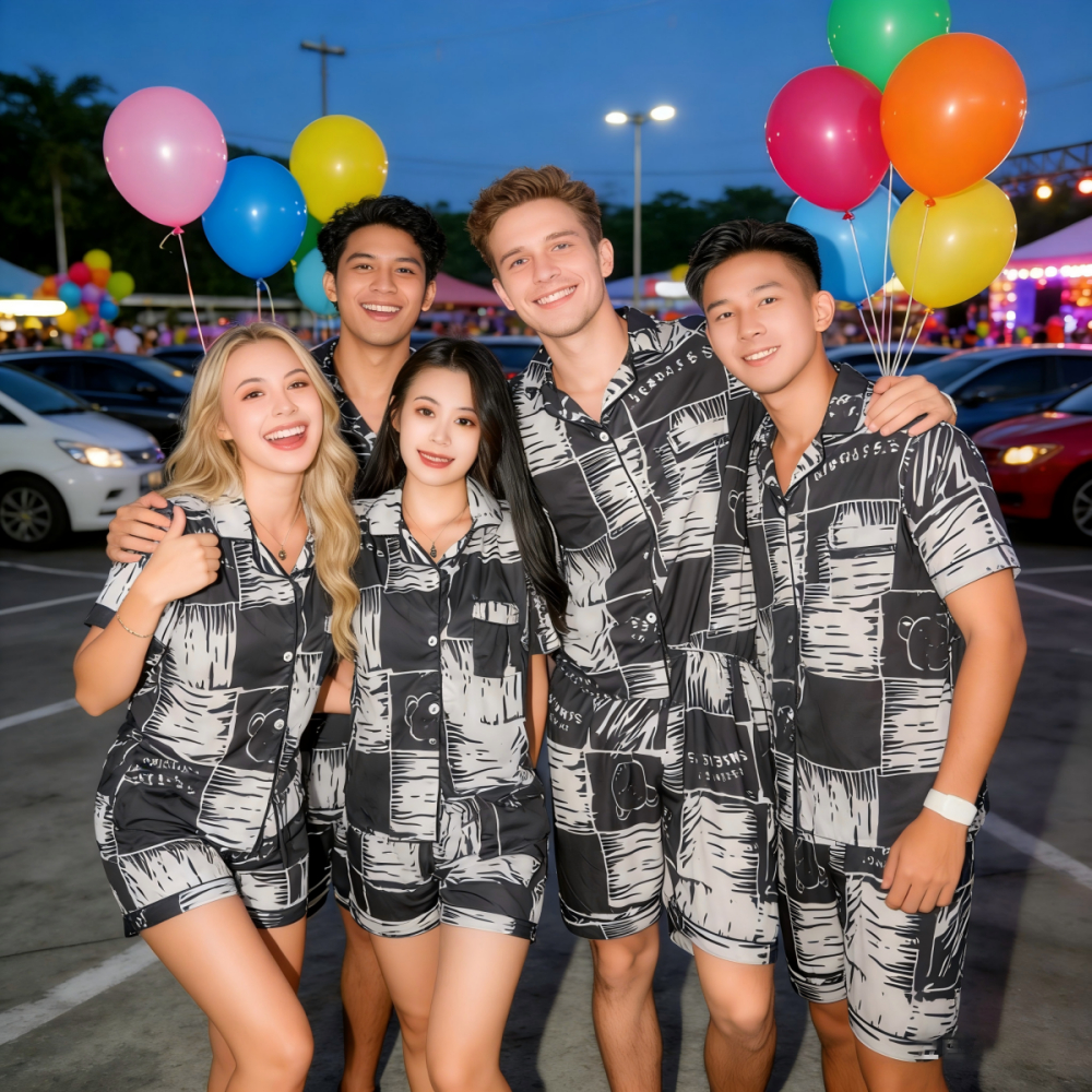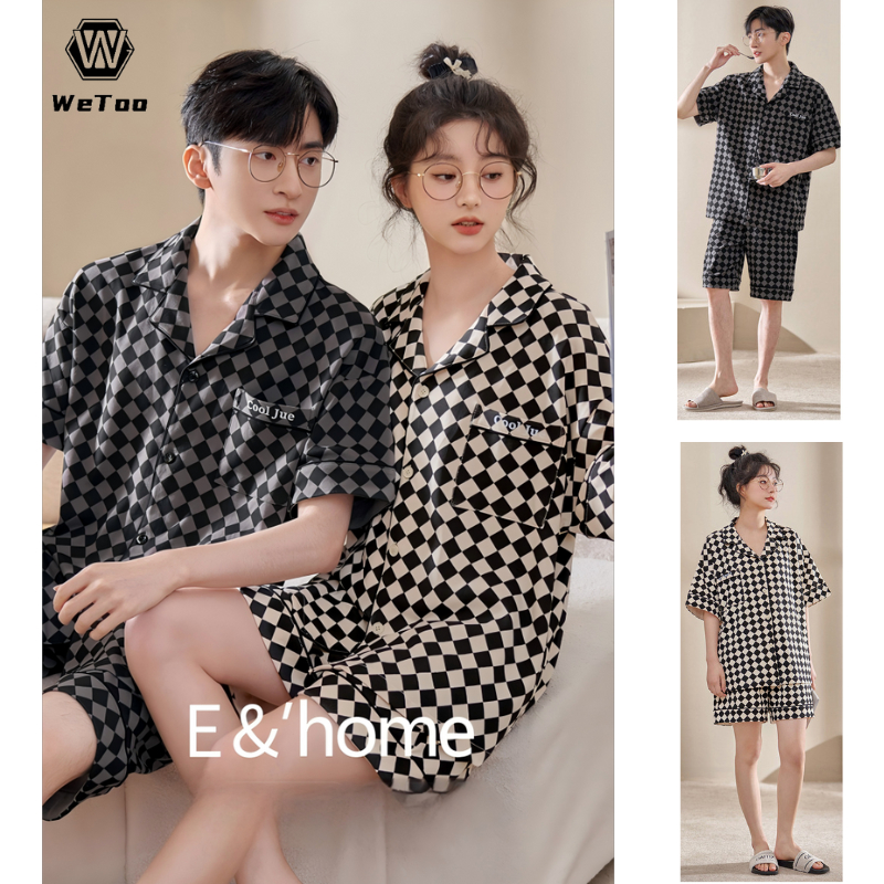 M-2XL Korea Smile unisex cotton short sleeve pattern comfortable pajamas/Couple design sleepwear for women and men(1 Set) Loungewear Pajama Set(COD)