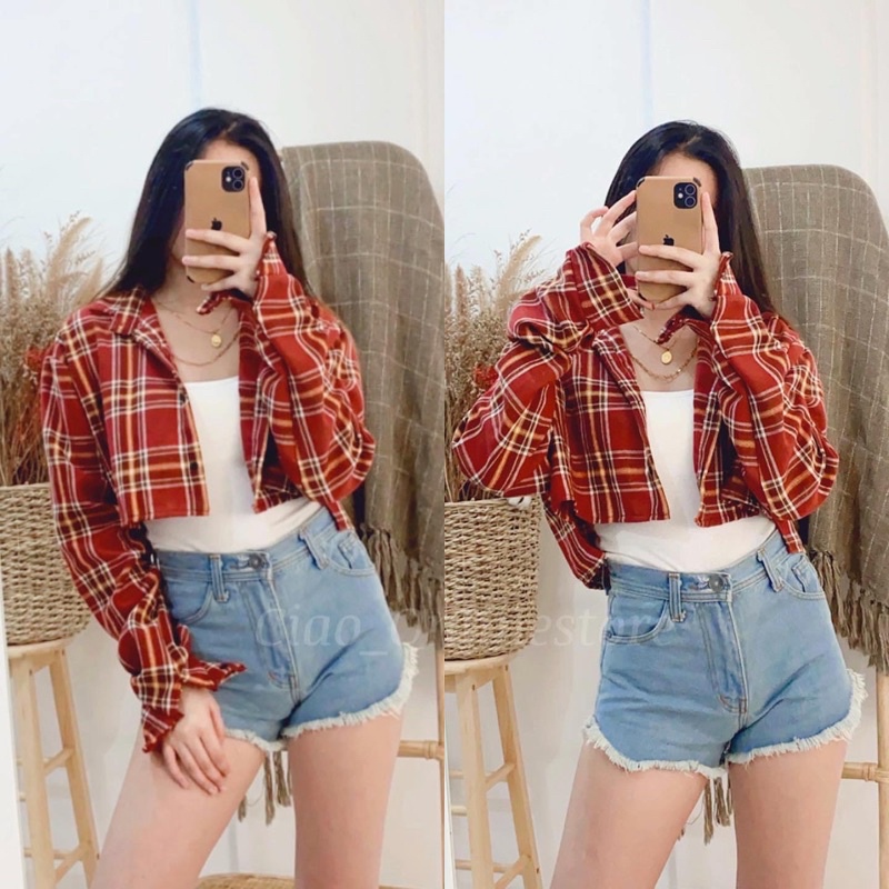 Cropped Flannel Jacket - Ciao_Onlinestore