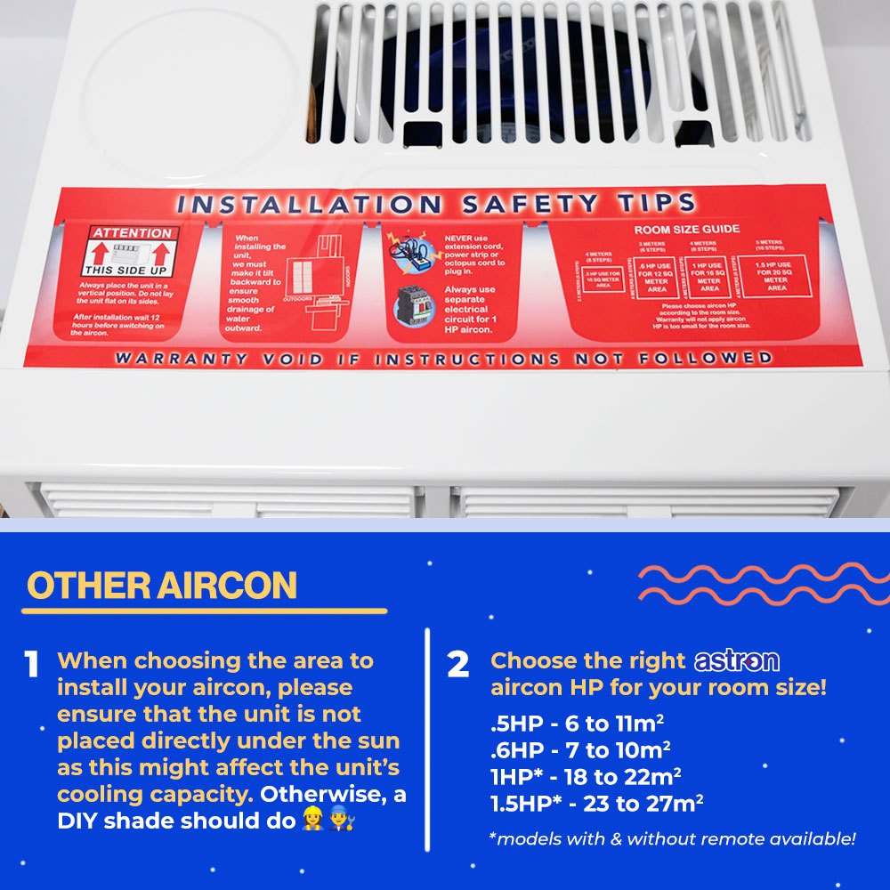 Astron 0.6HP Inverter Class Window Type Aircon with Remote | TCLRE60 | Energy-Saving|Built-In Filter