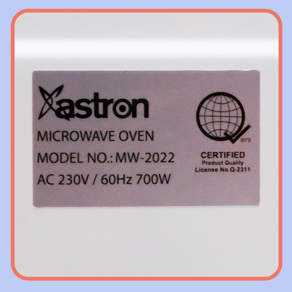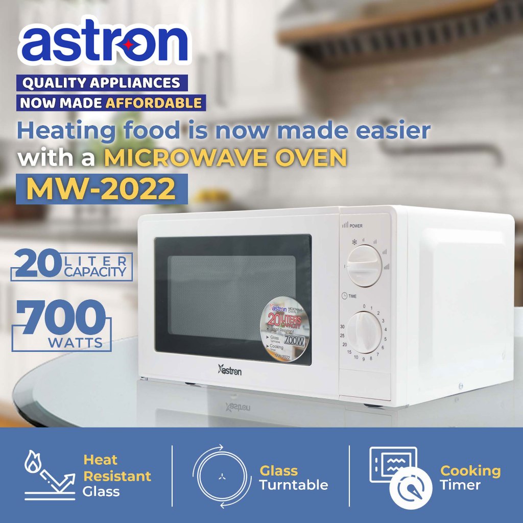 Astron MW2022 Microwave Oven - White | 20 Liter Capacity | 700W | Compact | Easy Controls