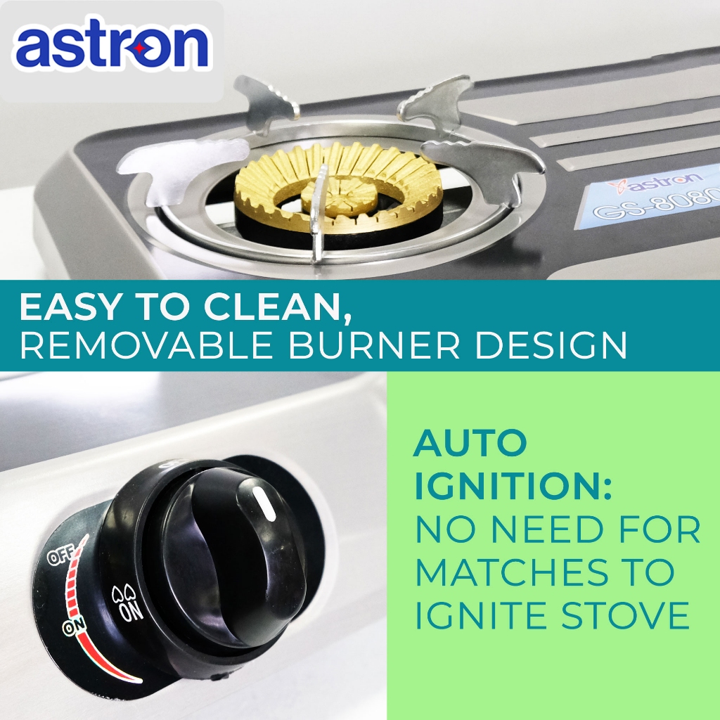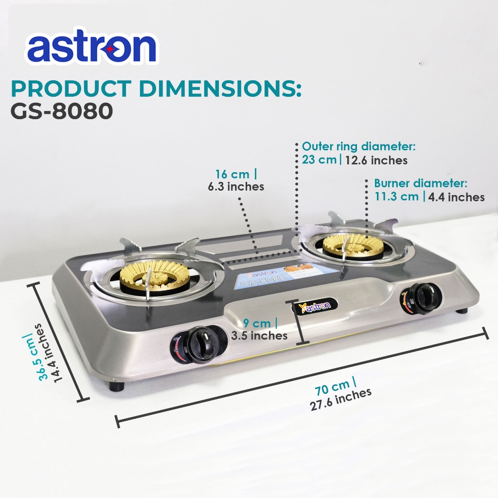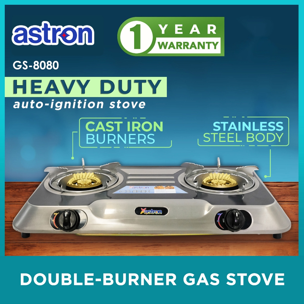 Astron GS8080 Double Burner Gas Stove | Heavy Duty Cast Iron | Stainless Steel Build