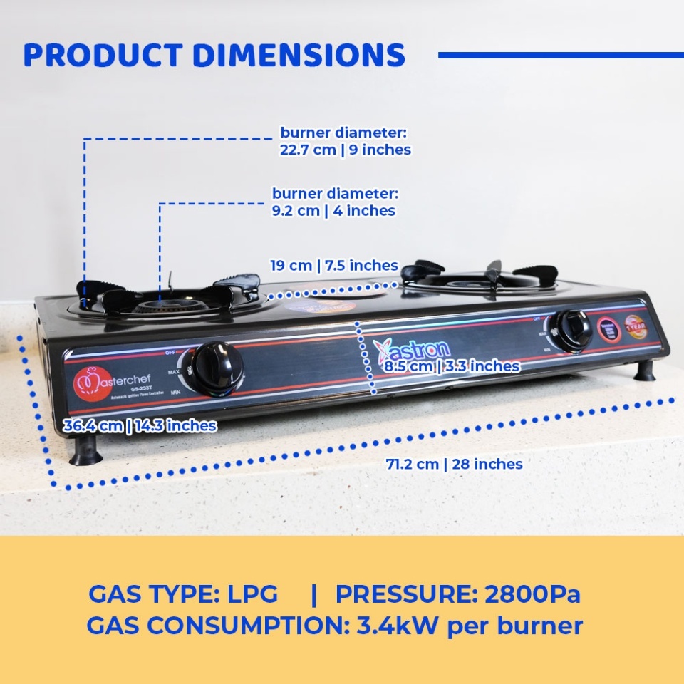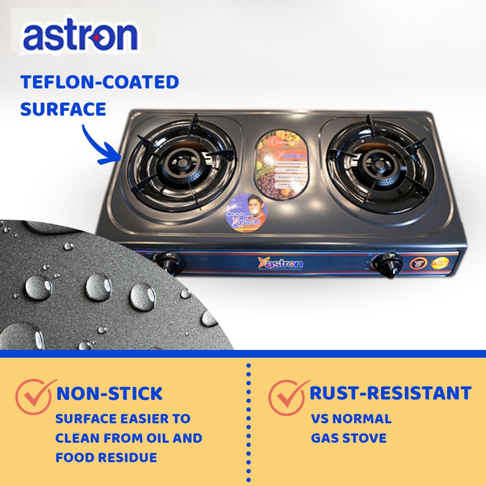 Astron GS233T Double Burner Gas Stove | Teflon-Coated | Heavy Duty | Non-stick | Easy to Clean