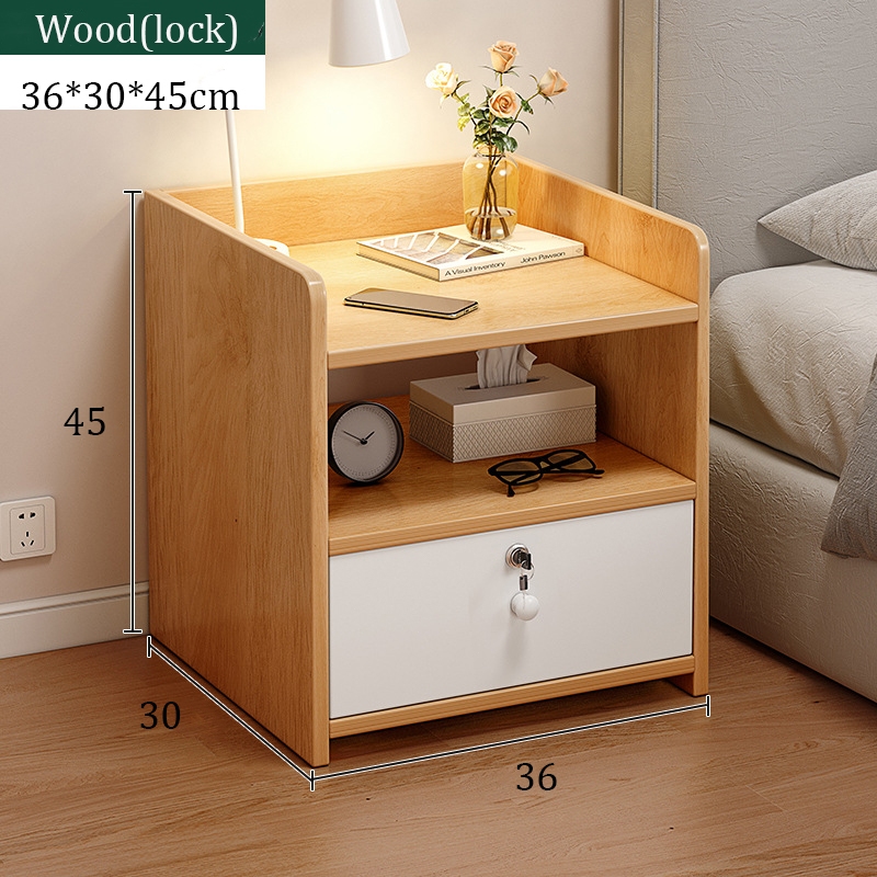 Nordic wooden nightstand Modern minimalist single-layer drawer bedside table Bedroom storage cabinet