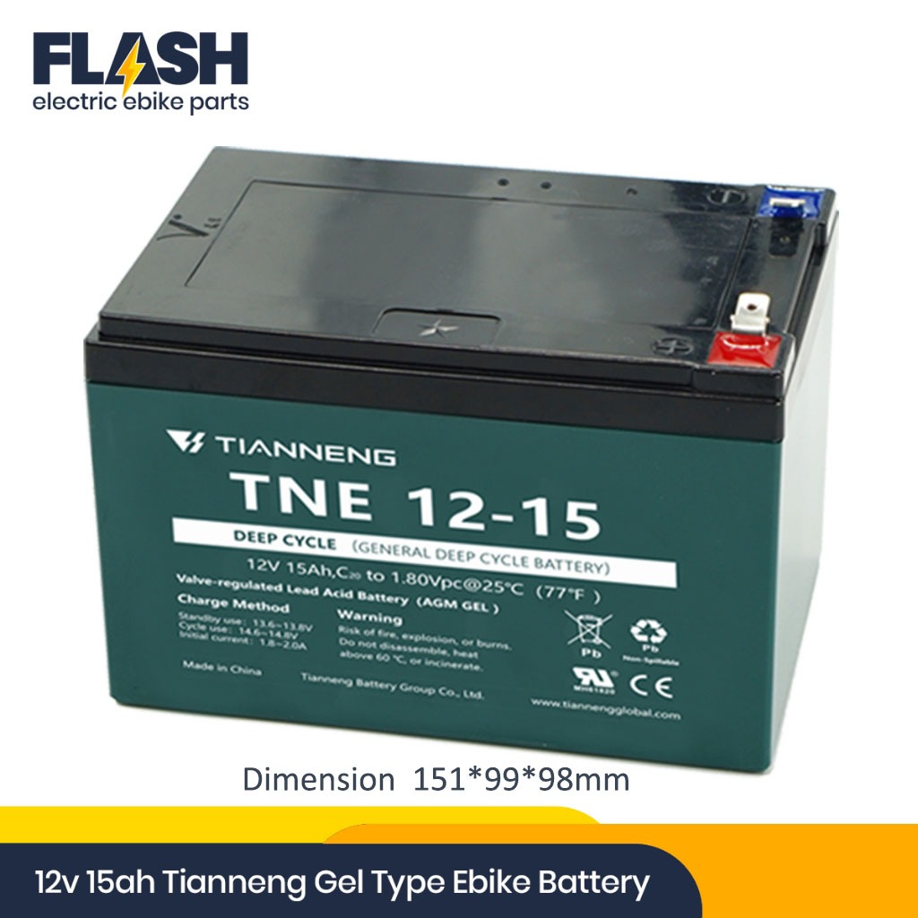 Ebike Battery 12v 15ah Tianneng Brand / Deep Cycle / AGM GEL battery /Maintenance Free/ Romai/ Nwow