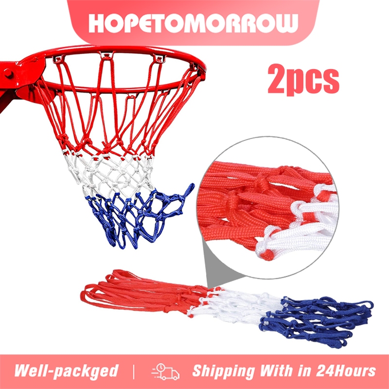 2PCS Standard Basketball Nets Heavy Duty Nylon Basketball Net Red White Blue Tricolor