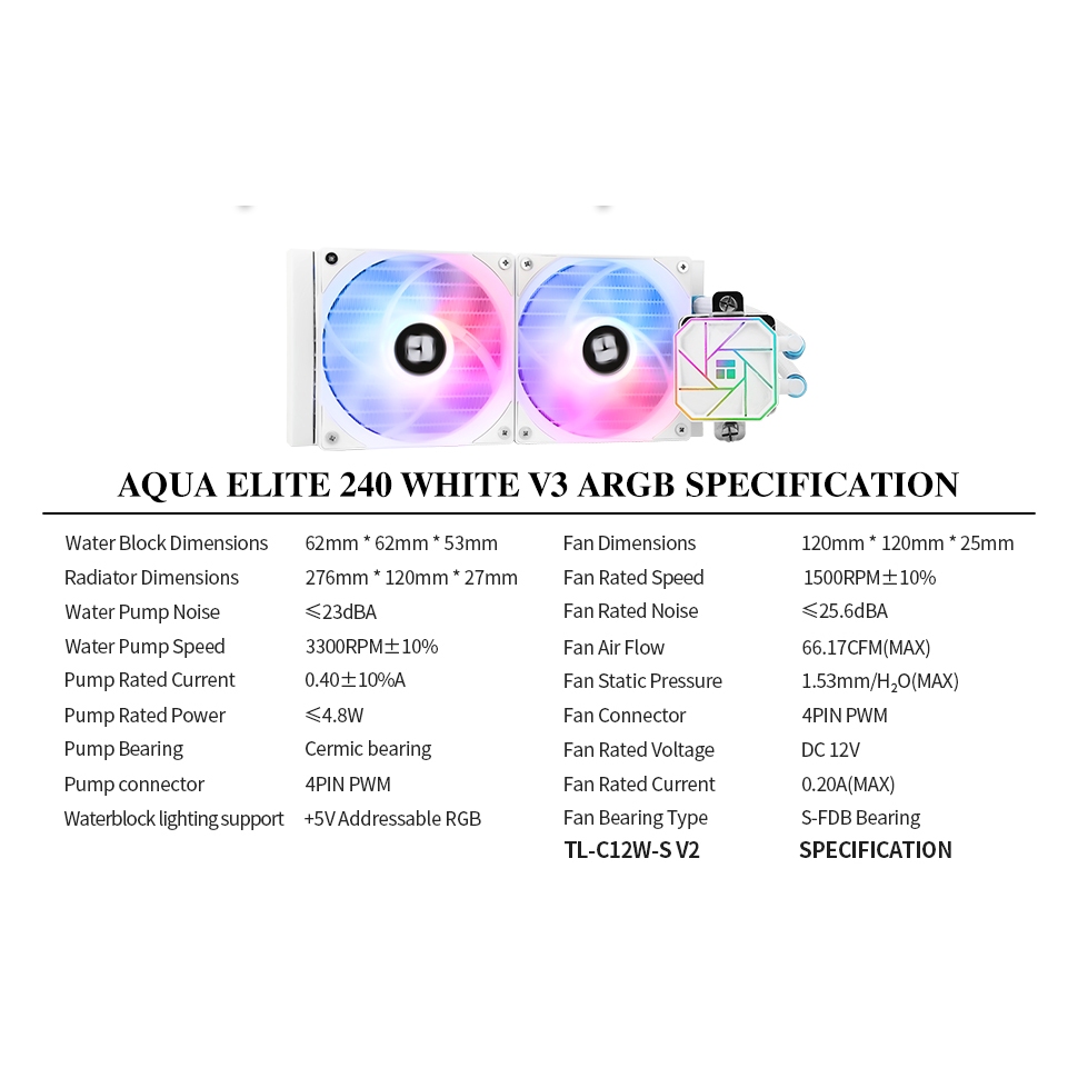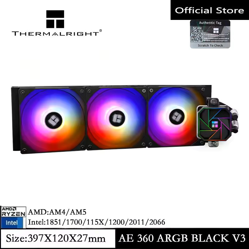 Thermalright AQUA ELITE 360 Water Cooling CPU Cooler Bkack Double PWM ARGB Fans with S-FDB Bearings Efficient PWM Controlled Pump for AMD/AM4/AM5 Intel LGA1150/1151/1200/2011/1700