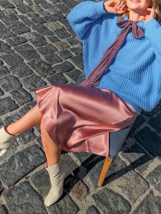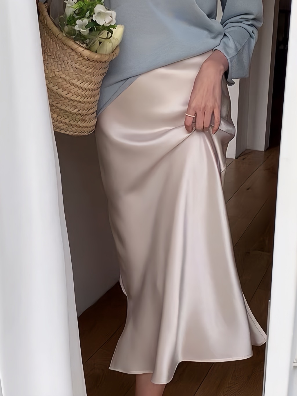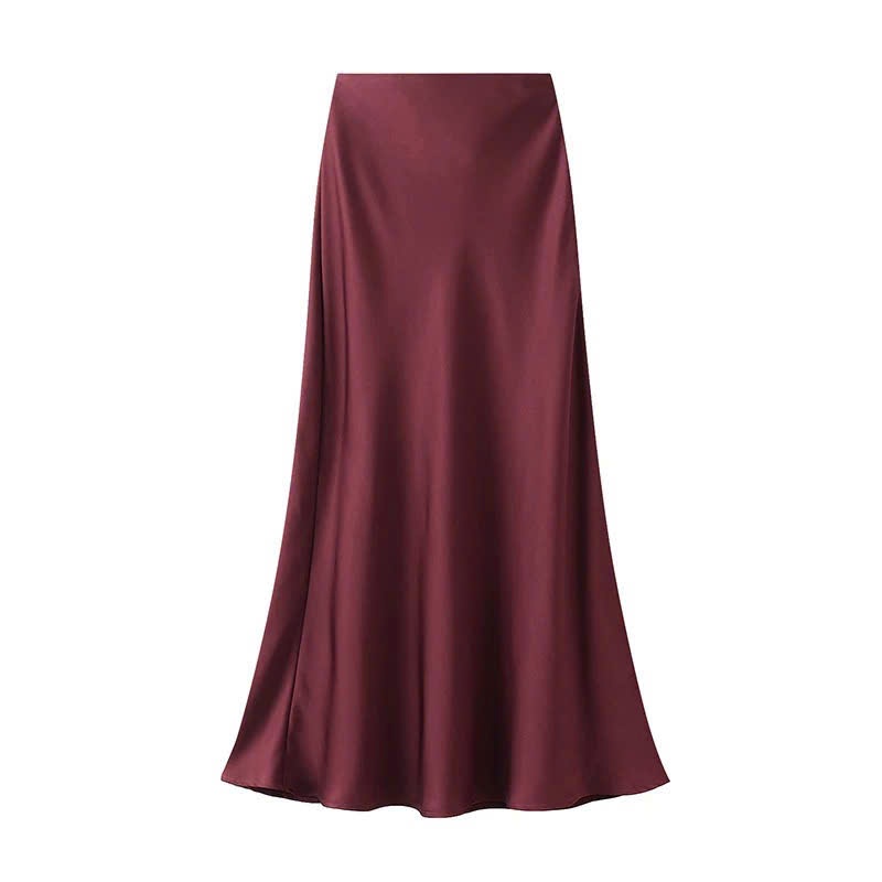 Formal A-Line Silk Midi Skirt with Light Fishtail Long Korean Style NV606 Women's Long Midi Skirt Made of Soft Satin Silk Satin Skirt Silk Skirt