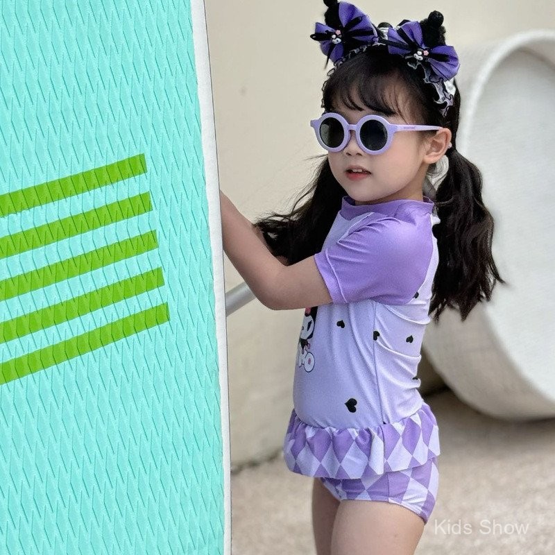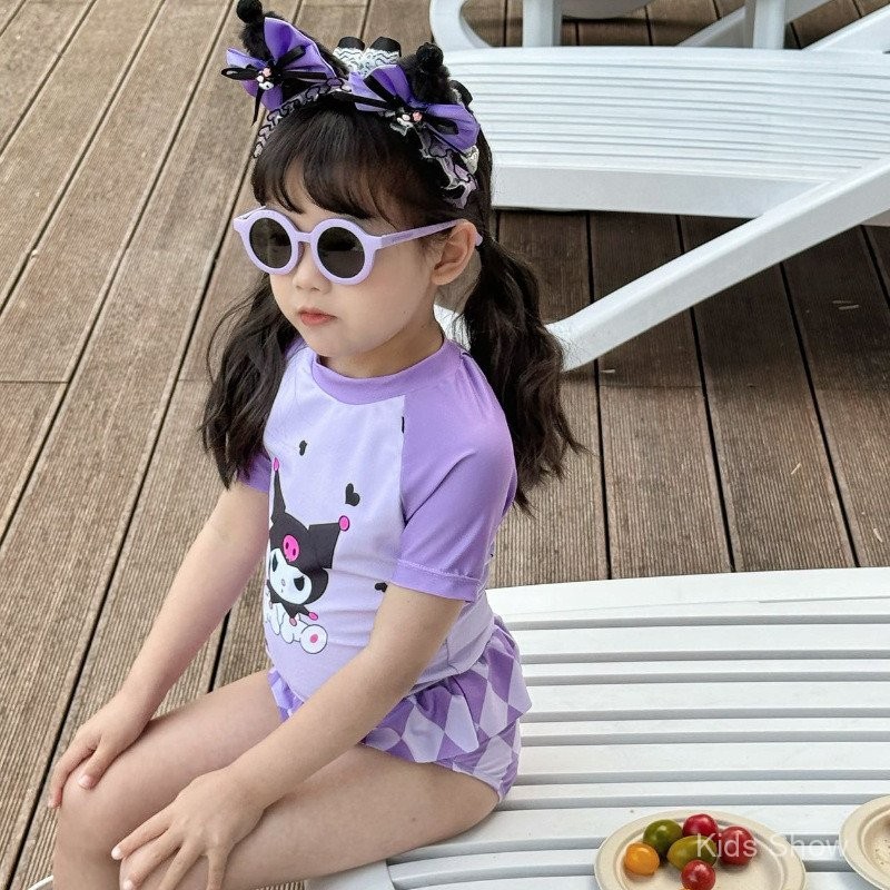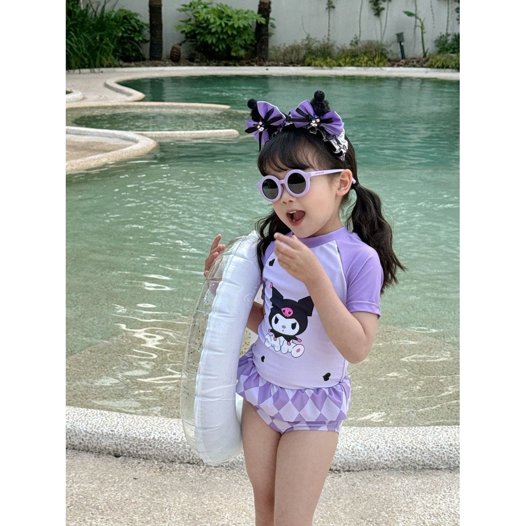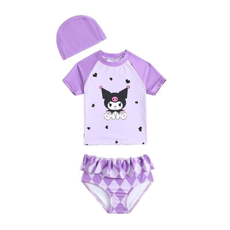 Kuromi Girls Summer Two Piece Short Sleeve Swimsuit Kids Swimming Outfit for Girls