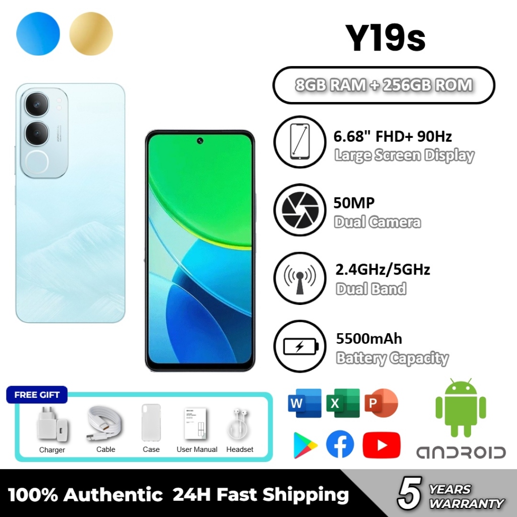 Y19s Smartphone with 6.68-inch 90Hz Display 8GB RAM+256GB ROM 5500mAh Long-lasting Battery