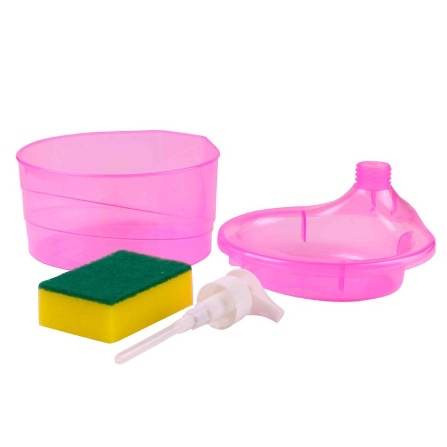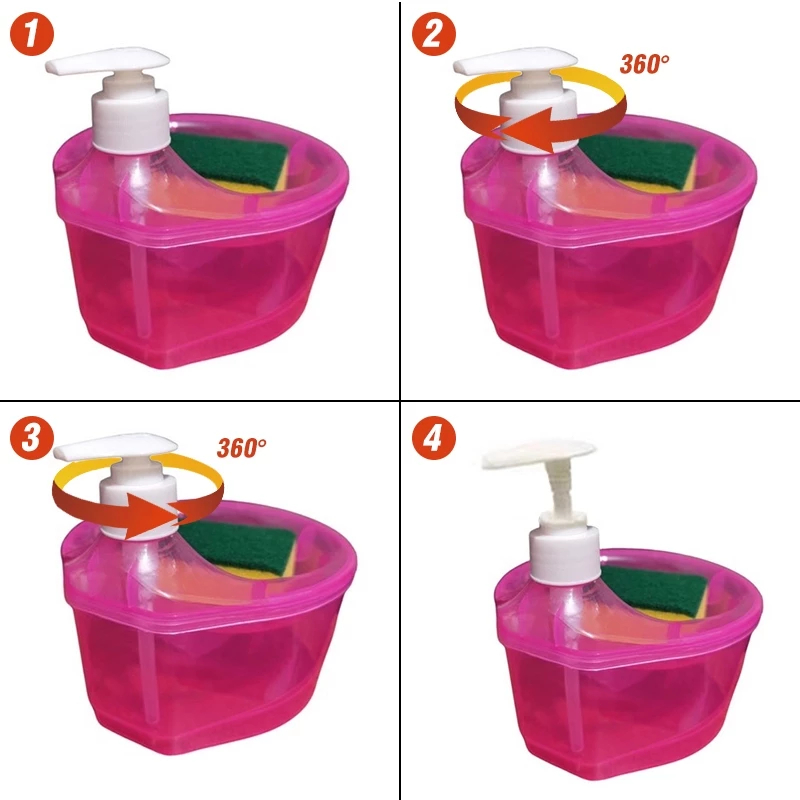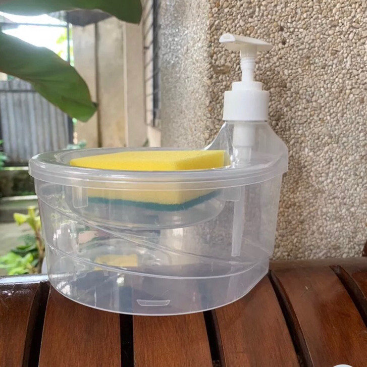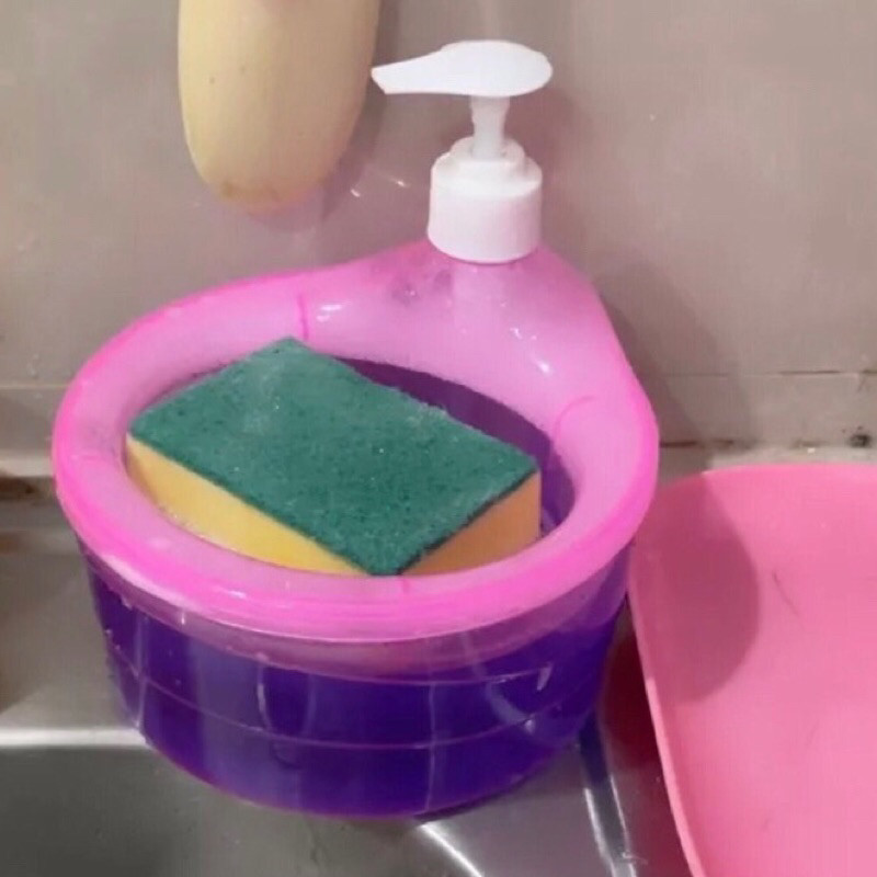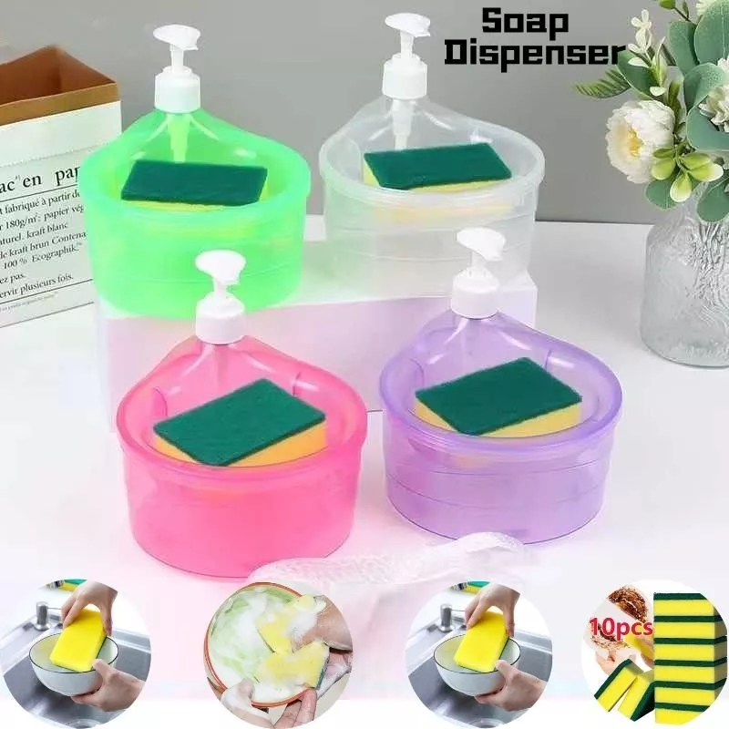 Round Shape Dishwashing Soap Liquid Pump Dispenser Container with Sponge 2 in 1 Kitchen Clean Tools