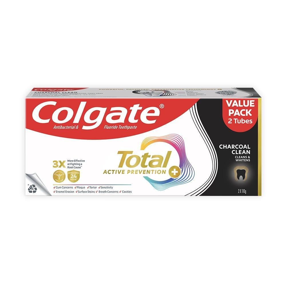 Colgate Total Active Prevention Charcoal Clean 110g Twin Pack