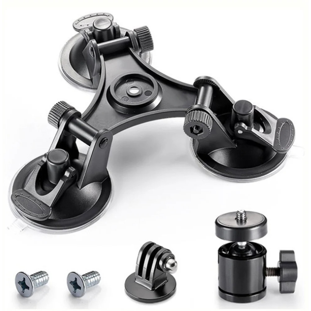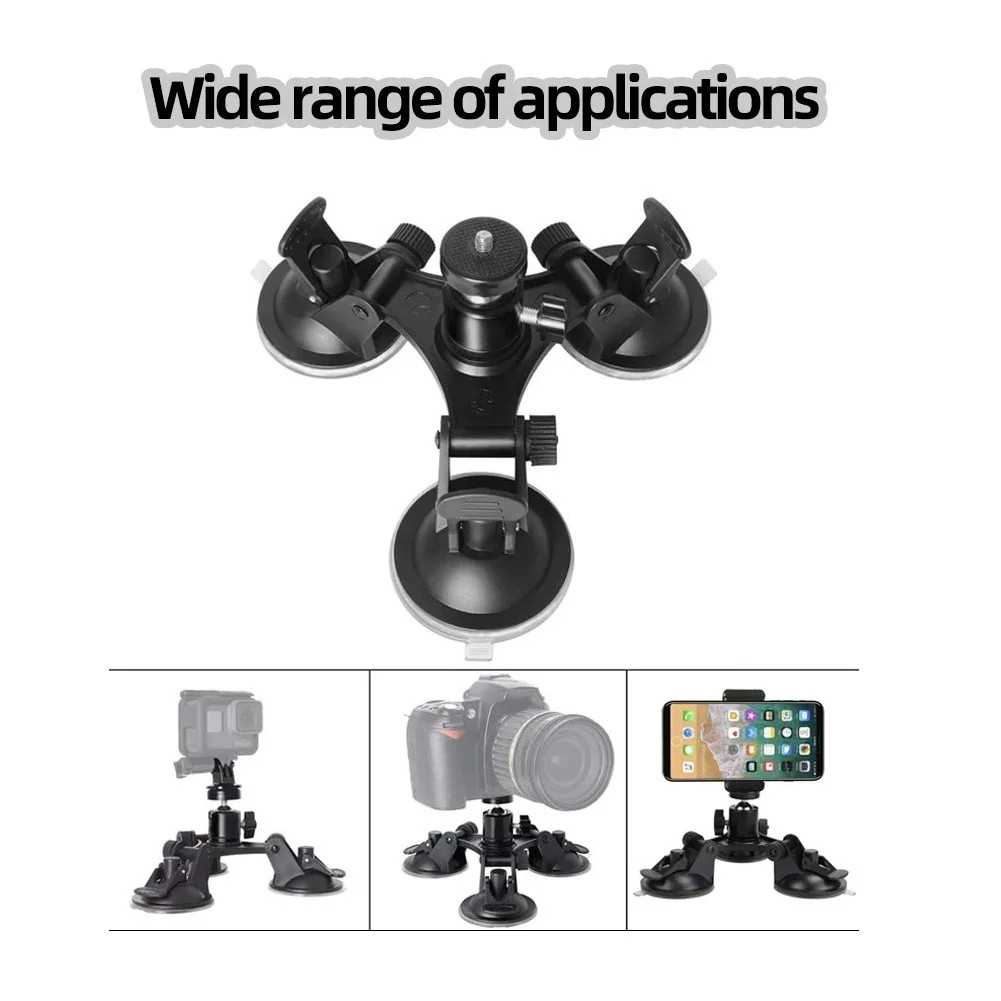 Car Suction Cup Mount 1/4'' Tripod Adapter for GoPro&DJI Action Cams Stable Glass Holder Universal