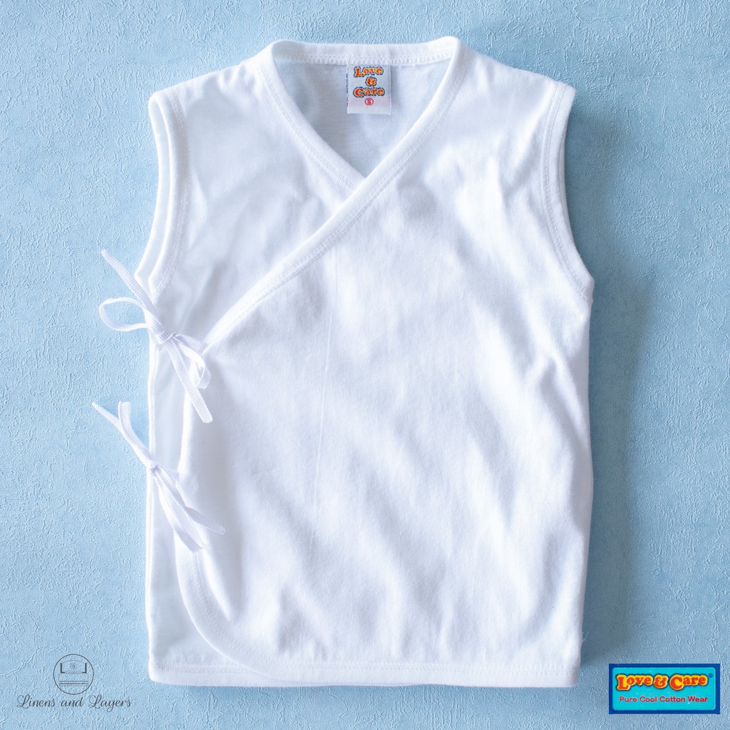 Love & Care - White Pure Cotton Infant / Newborn / Baby Tie-side Sleeveless
