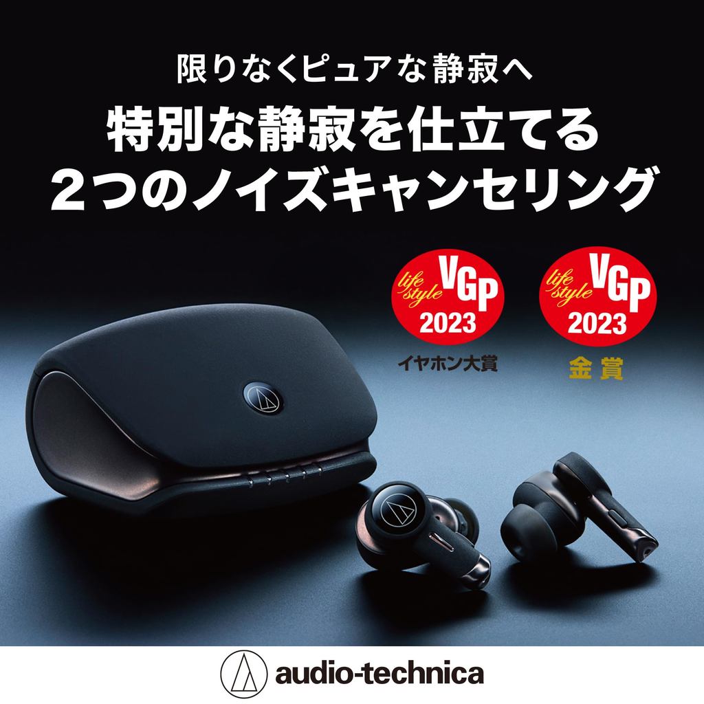 Audio-Technica ATH-TWX9 wireless earbuds feature Bluetooth, 18.5 hours playback, wireless charging, multipoint, UV sterilization, Alexa, enhanced call quality, low latency mode, IPX4 water resistance, aptX adaptive, AAC, and 360 Reality Audio.