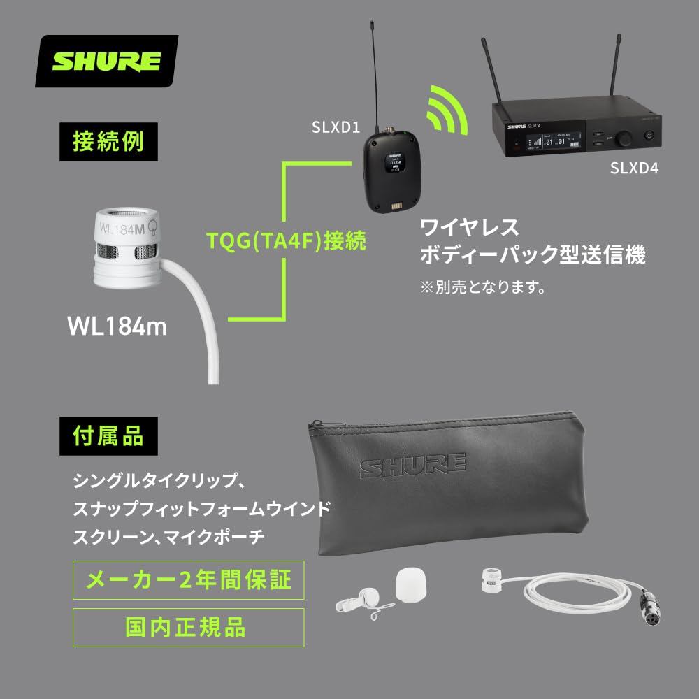 SHURE WL184m Lapel Microphone: Professional condenser, super cardioid, noise reduction, durable for speeches and performances. TQG connector, white, 2-year warranty.
