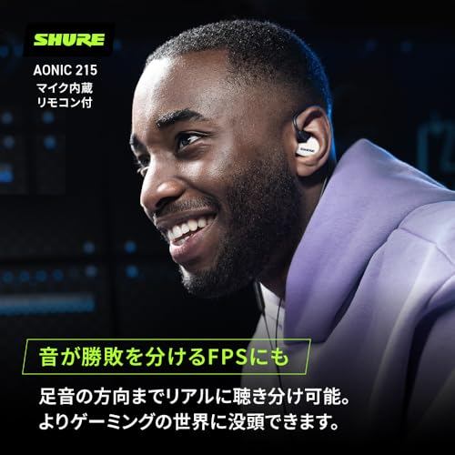 SHURE AONIC 215 Wired Earphones with Microphone (SE215DYWH+UNI-A) offer high noise isolation, ideal for gaming, audio listening, and remote work. 127 cm cable, low-end enhancement, and MMCX for re-cabling. 2-year warranty included.