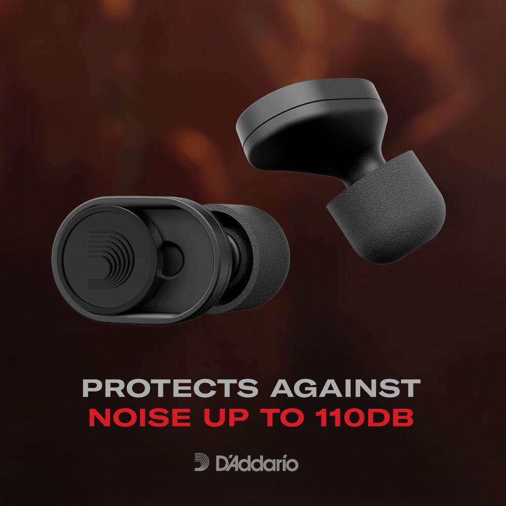 D'Addario dBud Hearing Protection Earplugs with dual attenuation (-12dB/-24dB). Includes detachable leash, carrying case. Authentic product.
