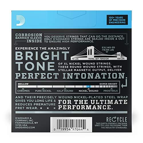 D'Addario Nickel Electric Guitar Strings Light Top/Heavy Bottom .010-.052 EXL140-3D, 3-pack, genuine domestic product.