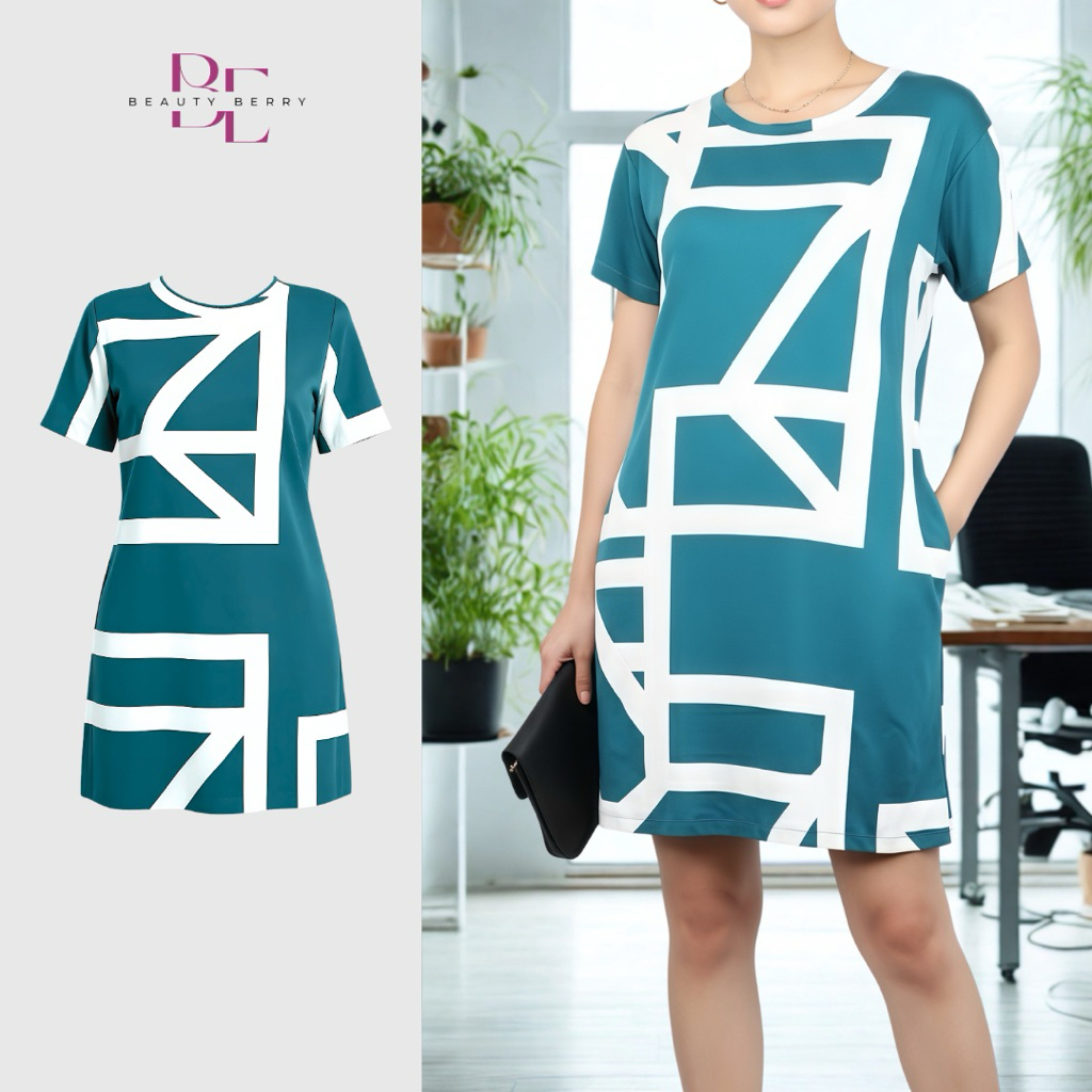 BB Summer Stripes Comfortable Casual Cotton Spandex Printed Shirt Dress with pockets #81-73003-5