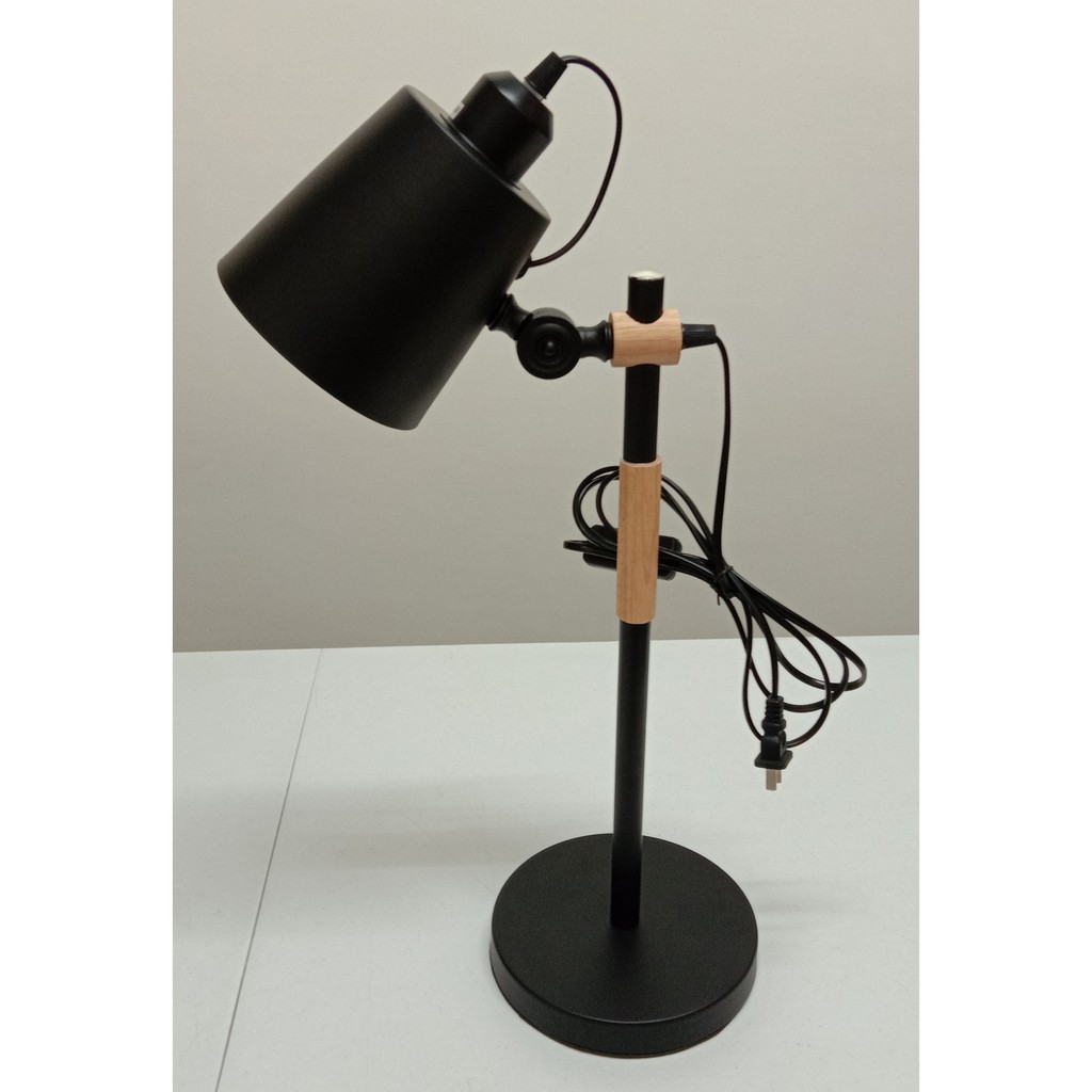 Modern Minimalist Solid Wood Retro Study Table Lamp (Black) E27