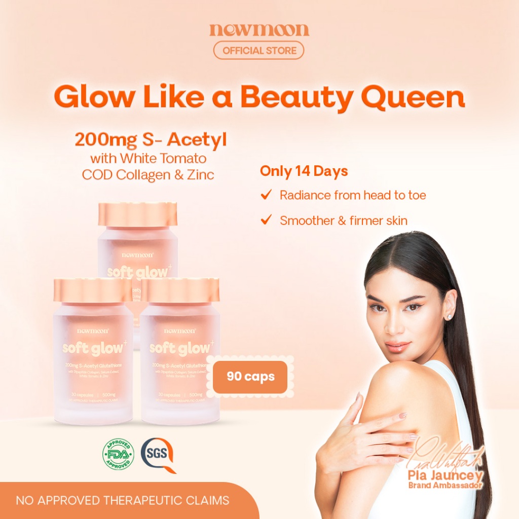 NEW MOON Whitening S-Acetyl Glutathione Supplement with Collagen & Vitamin C | Soft Glow+ 90 Capsule