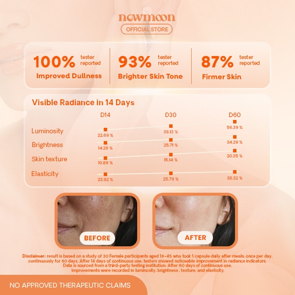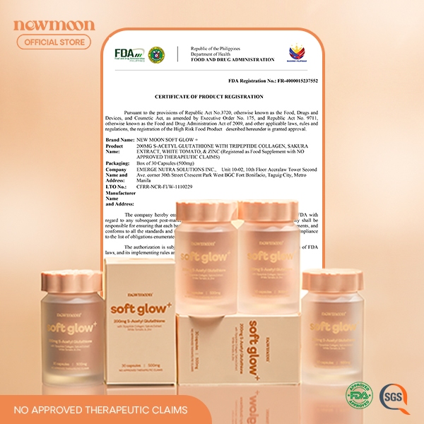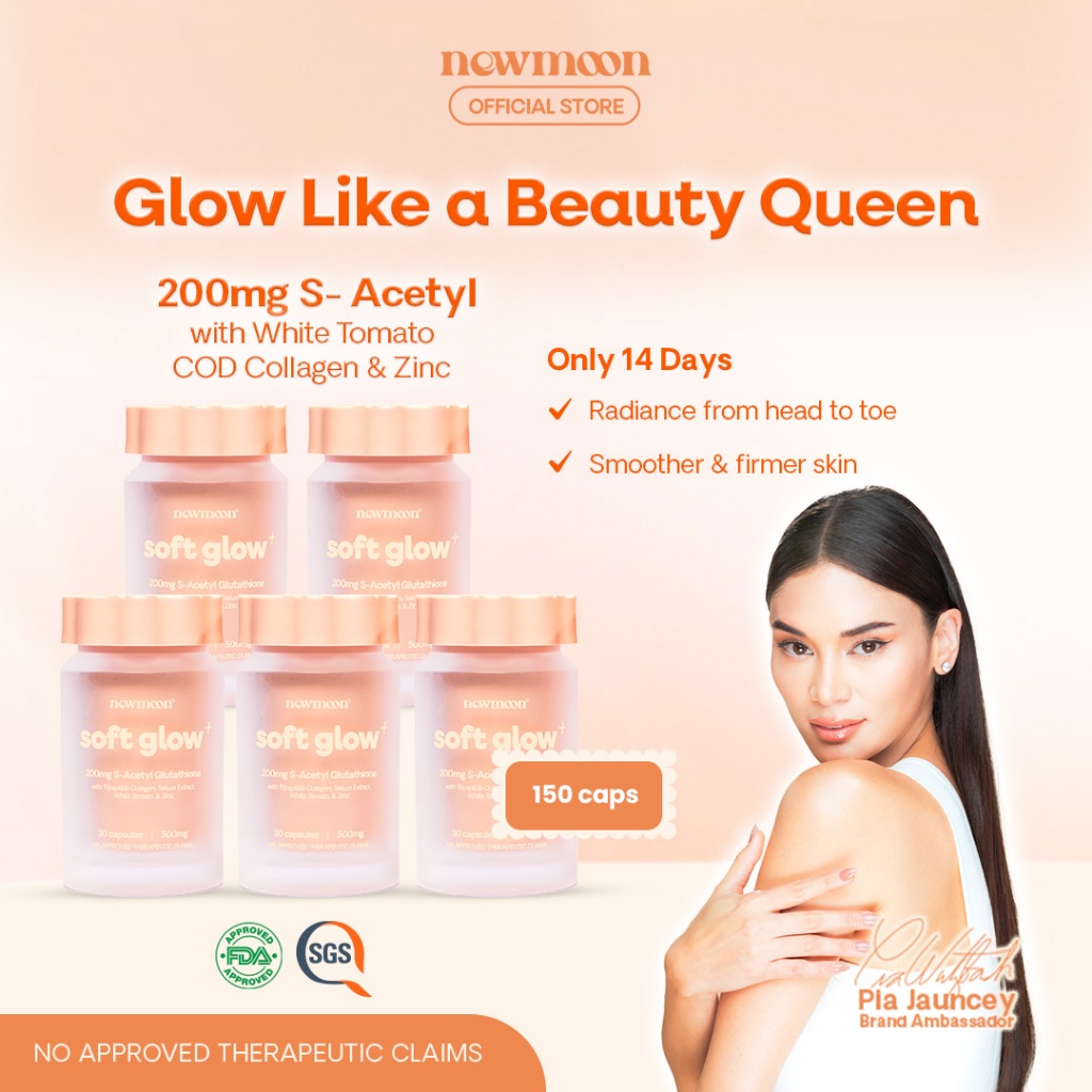 NEW MOON Whitening S-Acetyl Glutathione Supplement with Collagen & Vitamin C |Soft Glow+ 150 Capsule