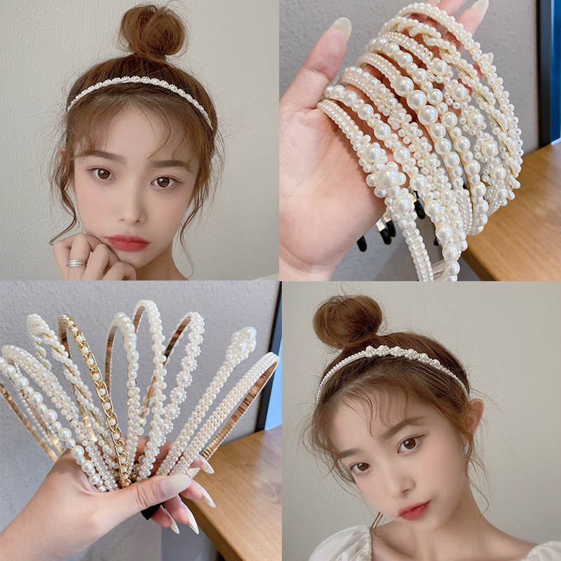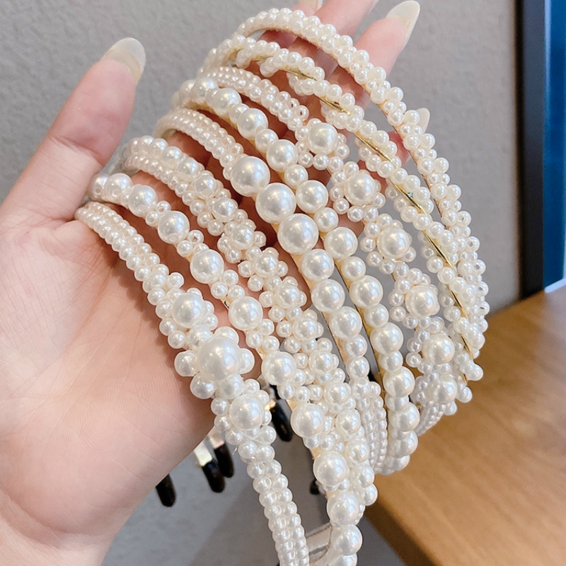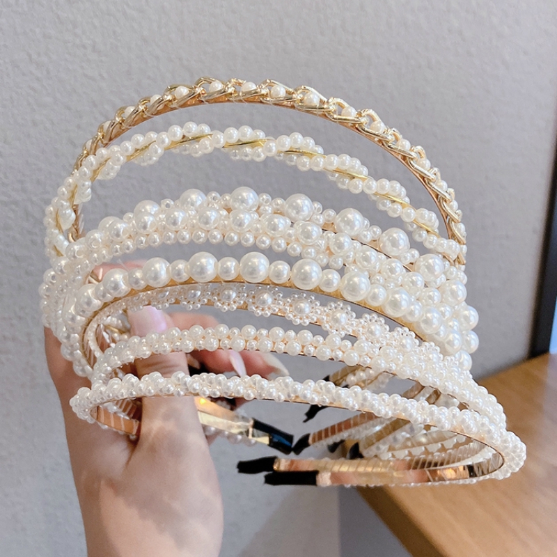 Gold Pearl Hairbands For Women Hair Accessories Designer Band Flower Hoops Bow Wedding Headband Metal Bridal Headwear Bands Clip
