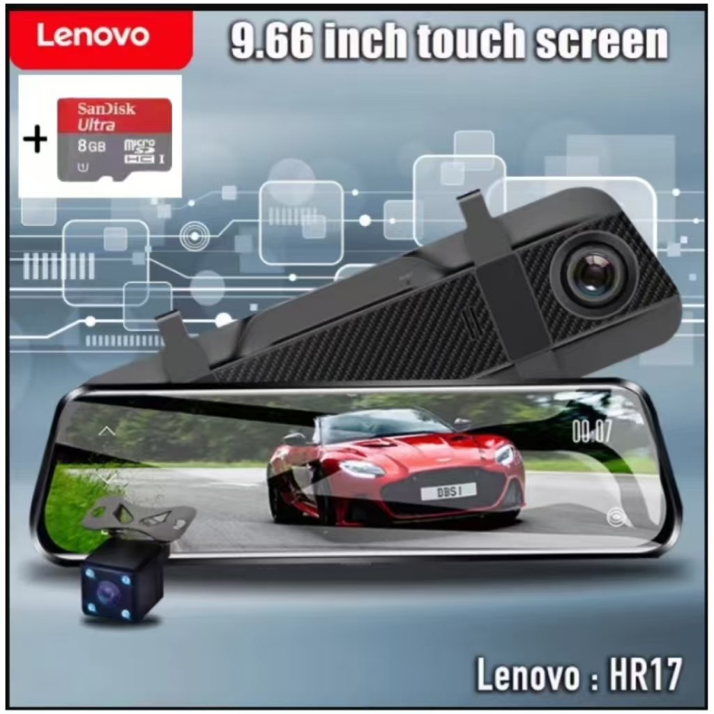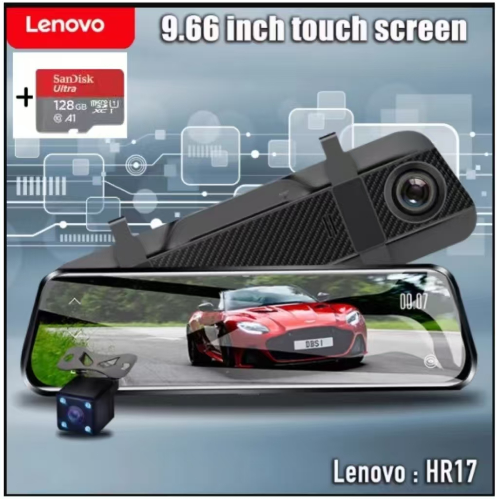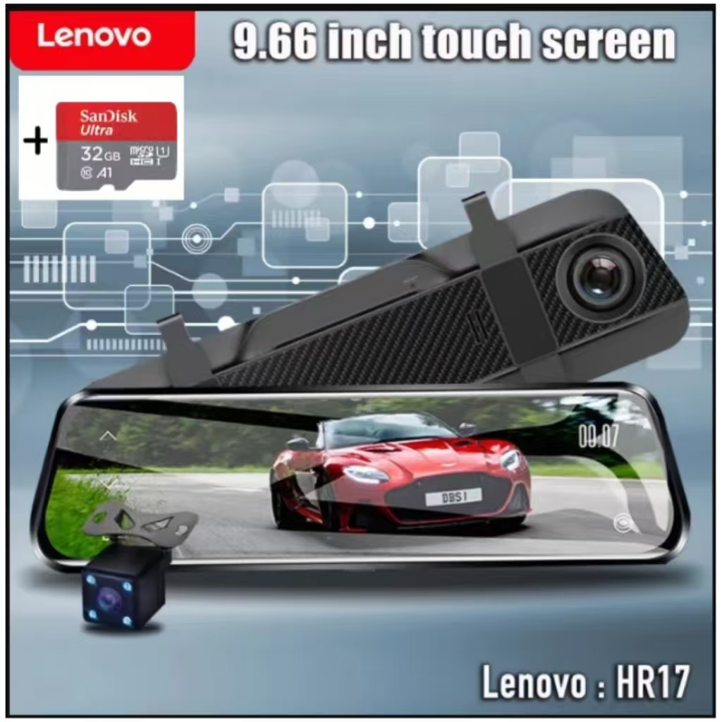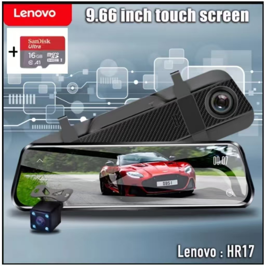 Lenovo smart dashcam 9.66 full screen 1080P HD night vision dual camera front back double recording