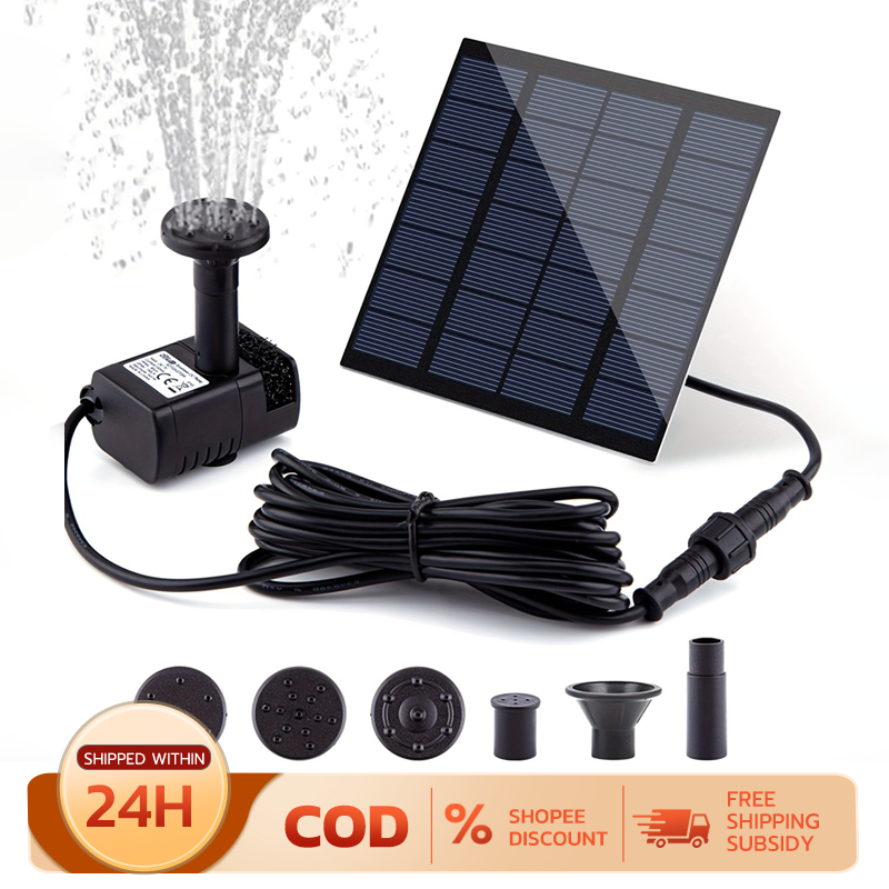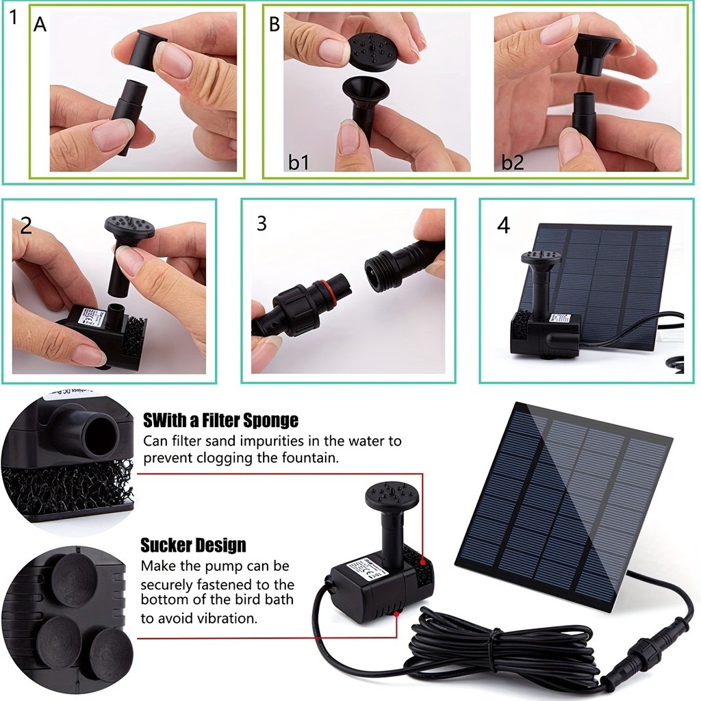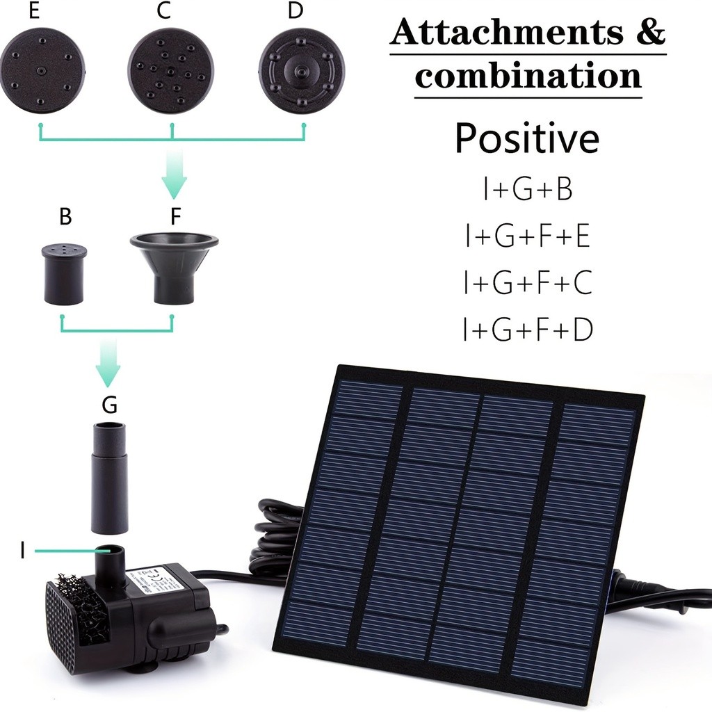 Solar Fountain Pump Kit & 4 Nozzles with Separate Solar Panel Small Solar Water Pump 3m Long Cable