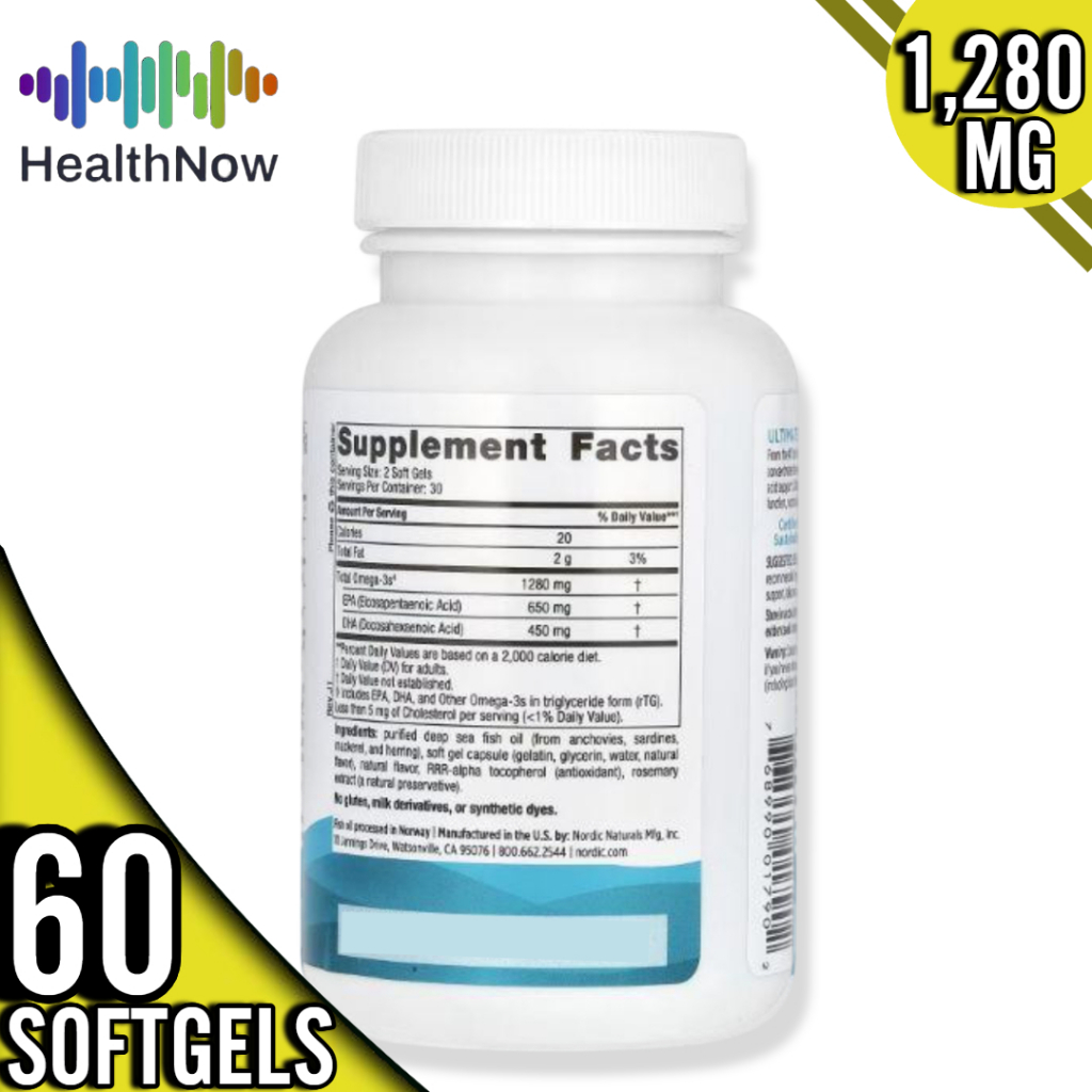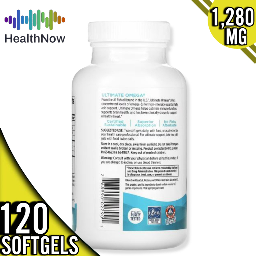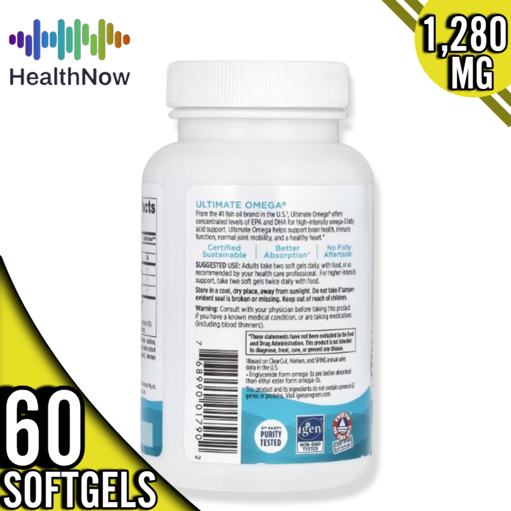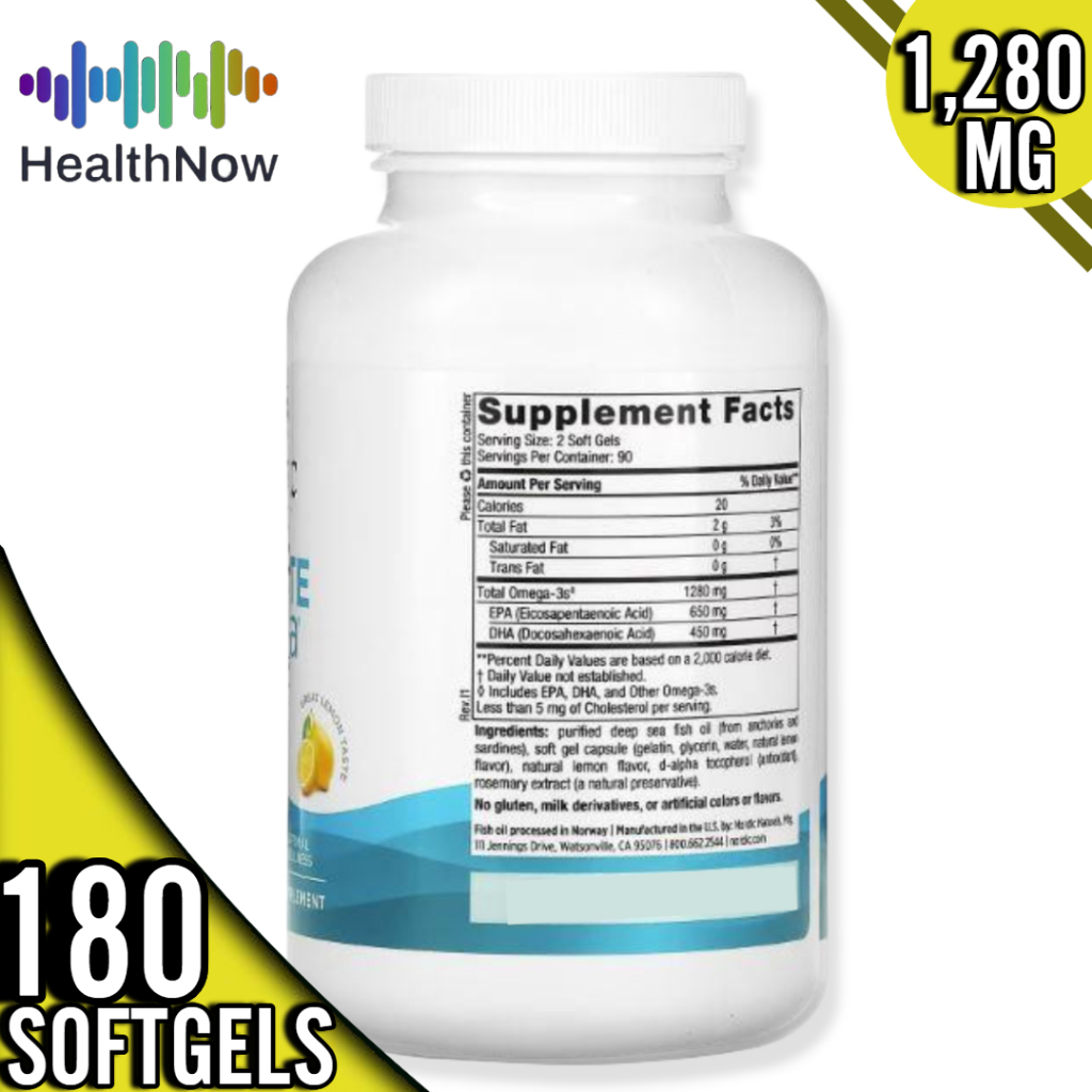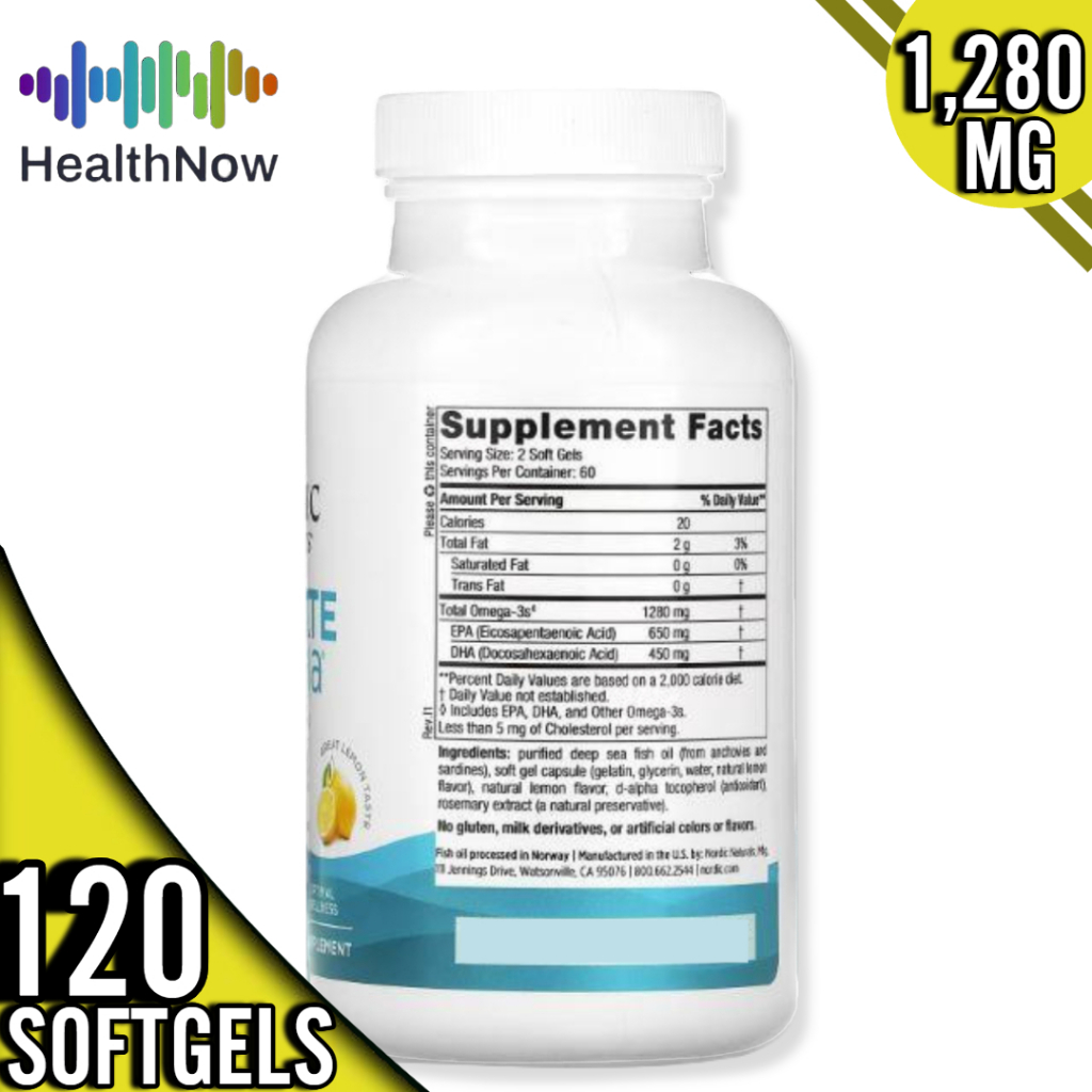 Nordic Naturals, Ultimate Omega, Lemon, 1,280 mg, 60 or 120 or 180 Soft Gels (640 mg per Soft Gel)