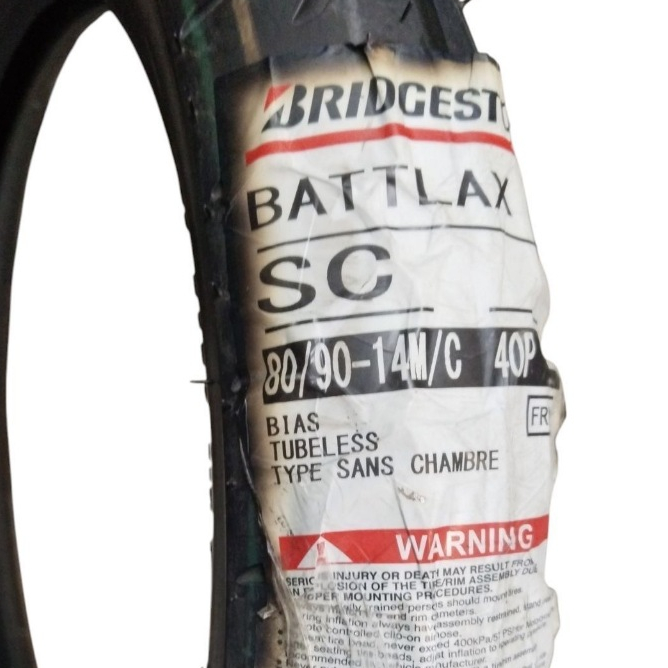 80/90-14 40P Bridgestone Battlax SC Front, Motorcycle Street Tubeless Tire