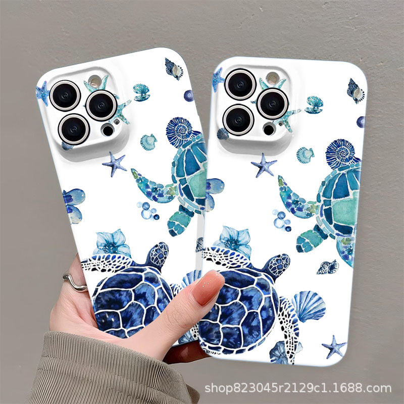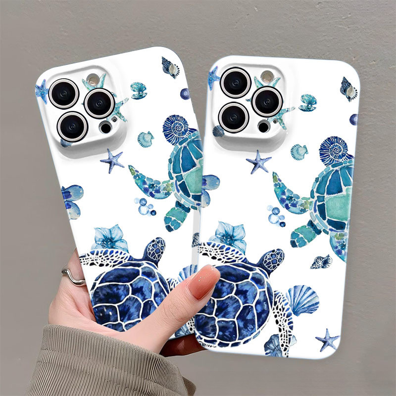 Watercolor style sea turtle New Fashion Creative Phone Hard Case Applicable iPhone XR 17PROMAX 16Pro 14Pro 12Promax Impact Resistance 15Plus 7Plus XS 13Pro 11 Anti-Fall Stain Resistant Protective Shell