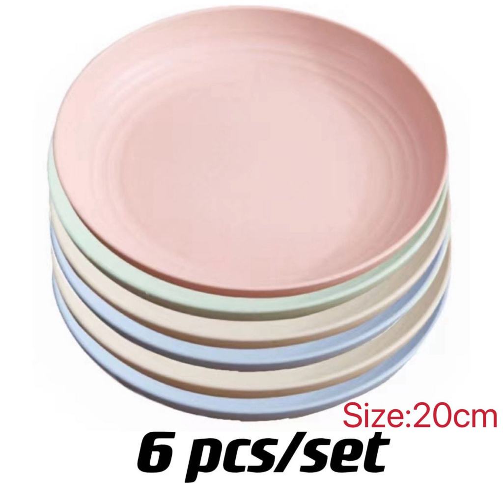 6 Pack Unbreakable Dinner Plates, 15cm Wheat Straw Plates, Reusable Deep Plastic Plates, Lightweight Salad Plates
