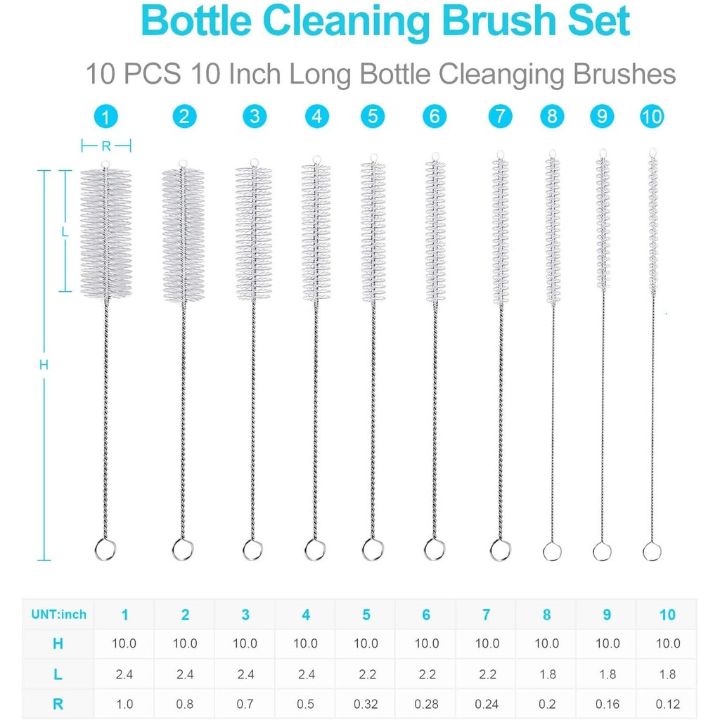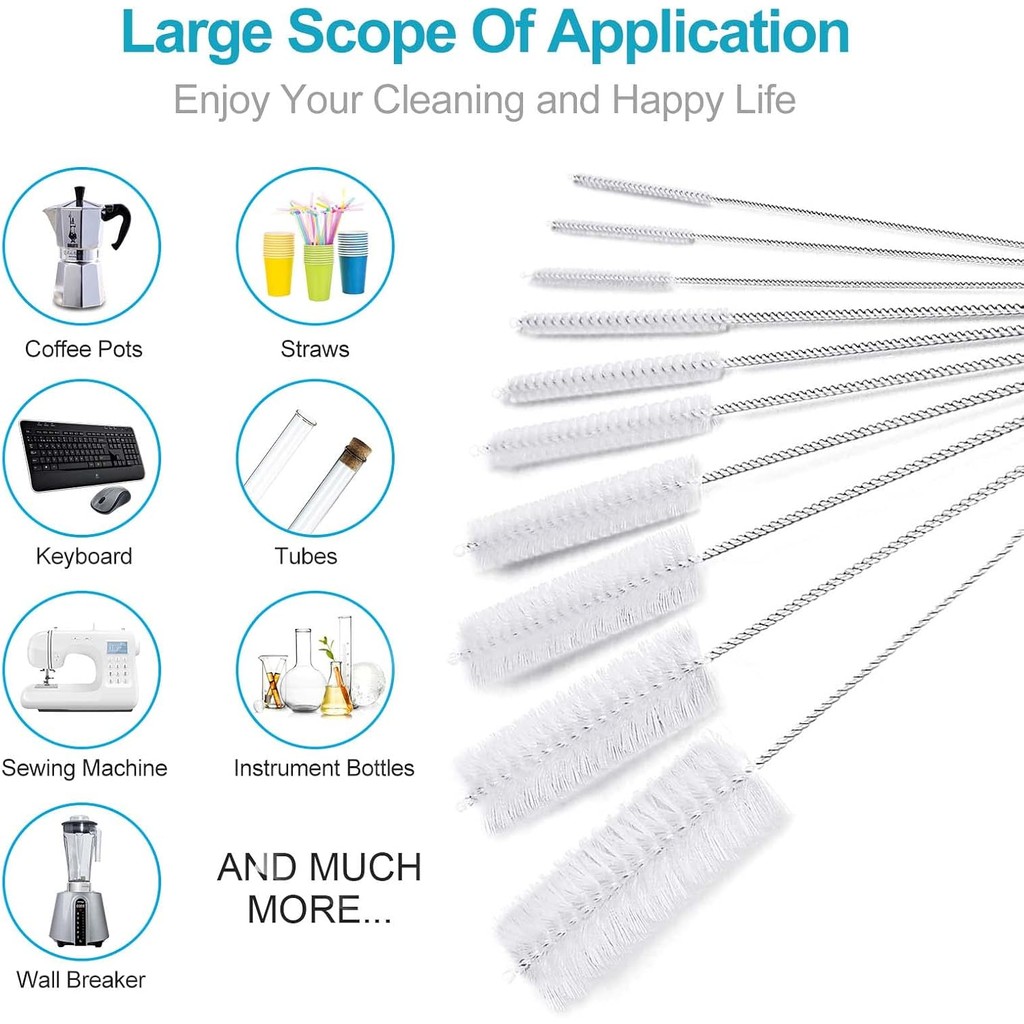 10pcs/Set Nylon Straw Cleaner Brush Set, Suitable for Bottle, Teapot, Airbrushes, Espresso Machines, Protective Design